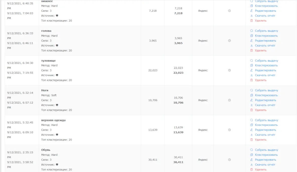Количество семантики для кластеризации и мониторинга уже в первые полгода исчислялось сотнями тысяч, а далее — миллионами ключевых фраз.