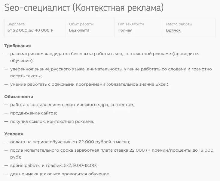 Тем, кто сильно переживает за тяжёлый труд сеошников, предлагаем съездить в Брянск и поискать работу без опыта.