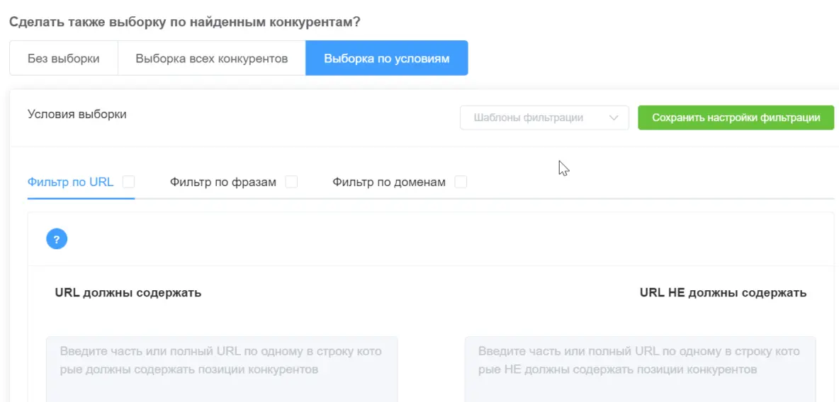 - В случае «Без конкурентов» выборка будет ограничена по размеру. Если вы будете использовать URL только одного сайта, вы получите по сути прообраз будущей кластеризации (кластеры).