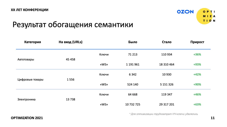 Учитывая количество категорий и видов товаров на ozon.ru, задача «собрать и обработать всю возможную семантику» выглядела примерно как «вычерпать море чайной ложечкой». Даже если делить ее на группы.
