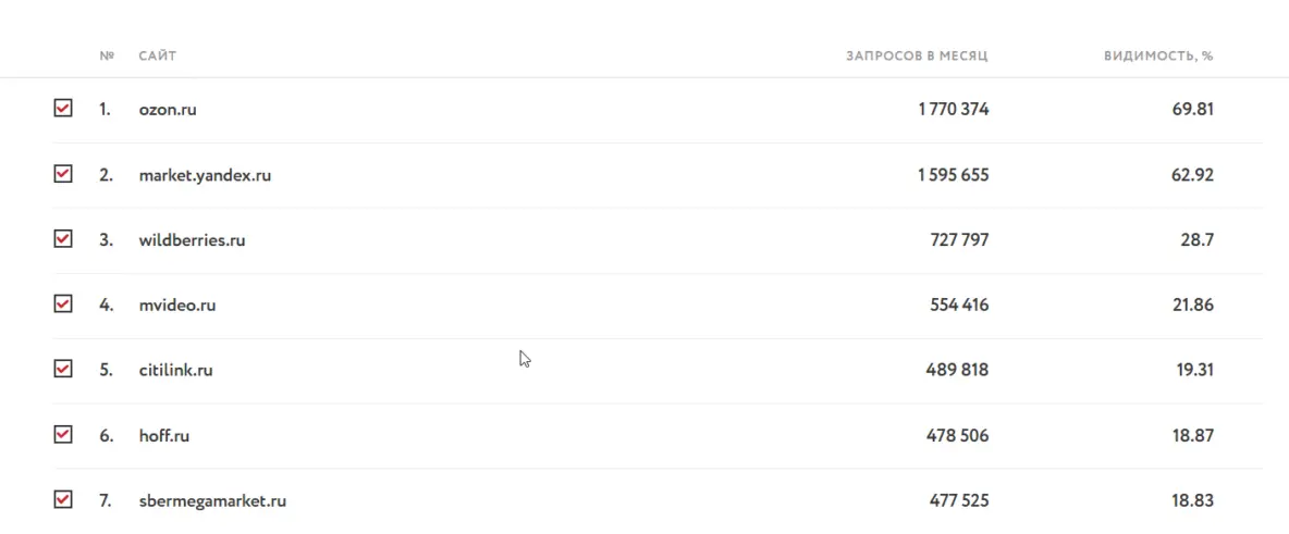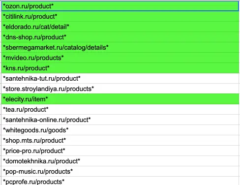 - Соберите сайты, которые хорошо ранжируются в этой теме — маркетплейсы, бренды и так далее, соберите страницы популярных моделей и категорий.