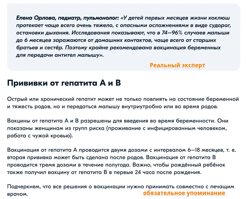 Особенно стоит выделить медицину: тексты писали наши опытные авторы, но всегда — с привлечением эксперта-медика.
