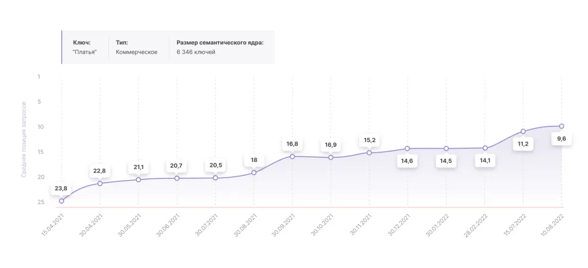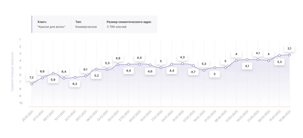 Как видите, качественные тексты приводят к впечатляющему росту. На графиках показана средняя позиция запросов в поисковой системе.