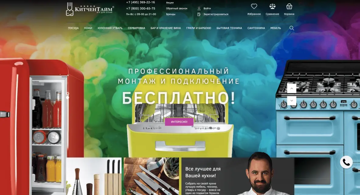 «КитченТайм» — магазин кухонной утвари, мебели и кухонной техники, открылся в 2018 году. Магазин продает более 60 000 наименований товаров от 350+ брендов.