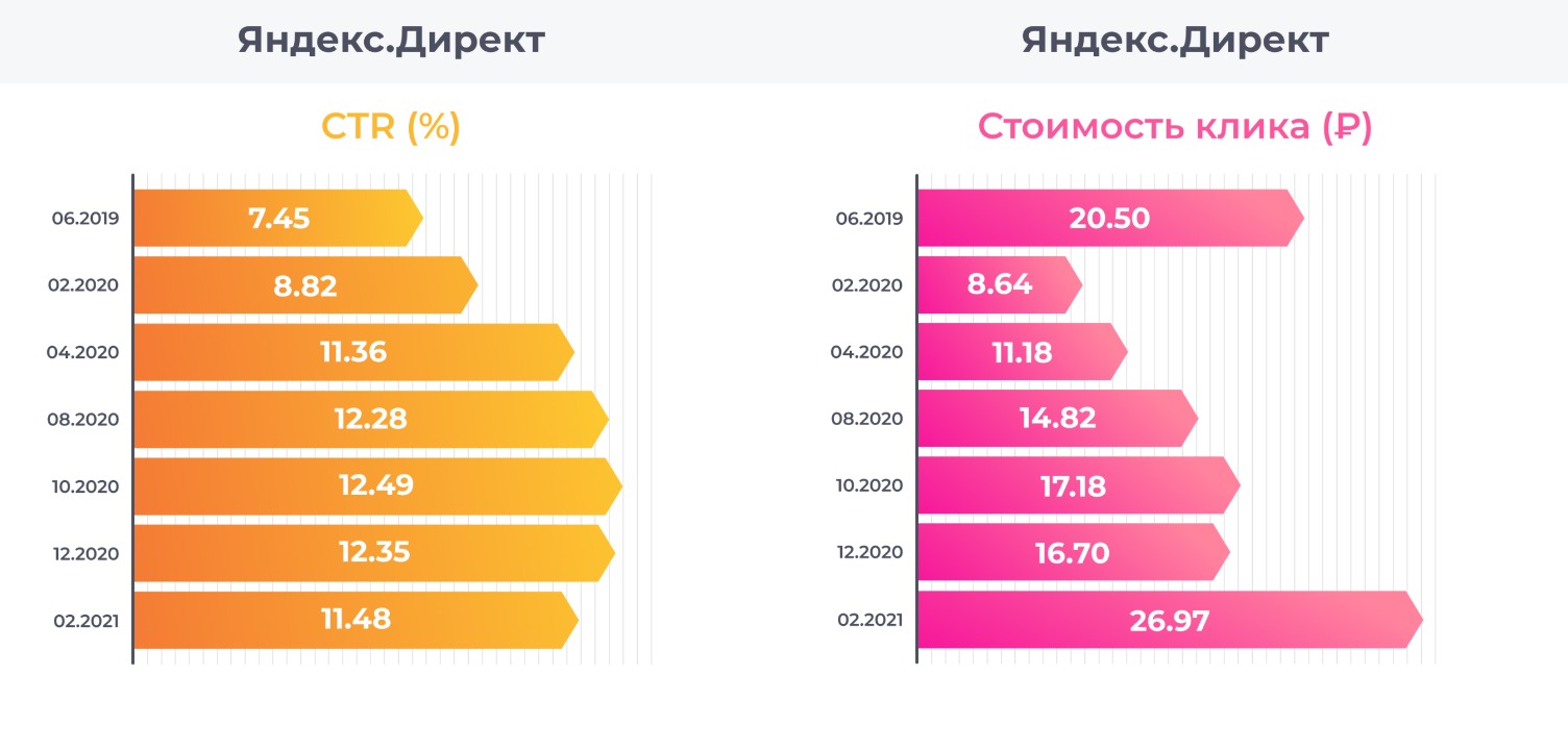 Цена клика: от 22,34 до 10,83 руб., по общим запросам — 12,25 руб.
