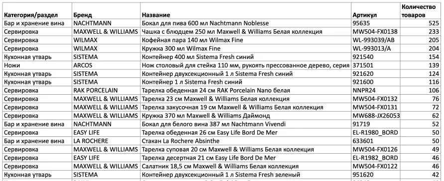 Любопытный факт: самый продаваемый товар в прошедшем году — пивные бокалы. Вообще же, если судить по статистике спроса, россияне старались сервировать свои трапезы «как в ресторане», хотелось красоты в быту. Неплохой способ борьбы со стрессом изоляции.