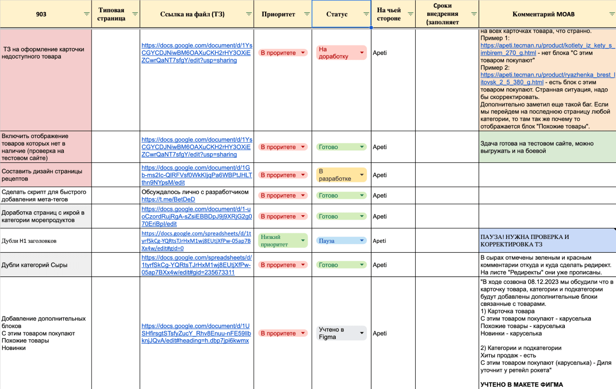 Благо, программисты были доступны и отзывчивы. Это огромный плюс для SEO-проекта. Техническая оптимизация становится крайне затруднительной, если разработчики заняты другими задачами и выполняют подготовленные ТЗ в неспешном темпе.