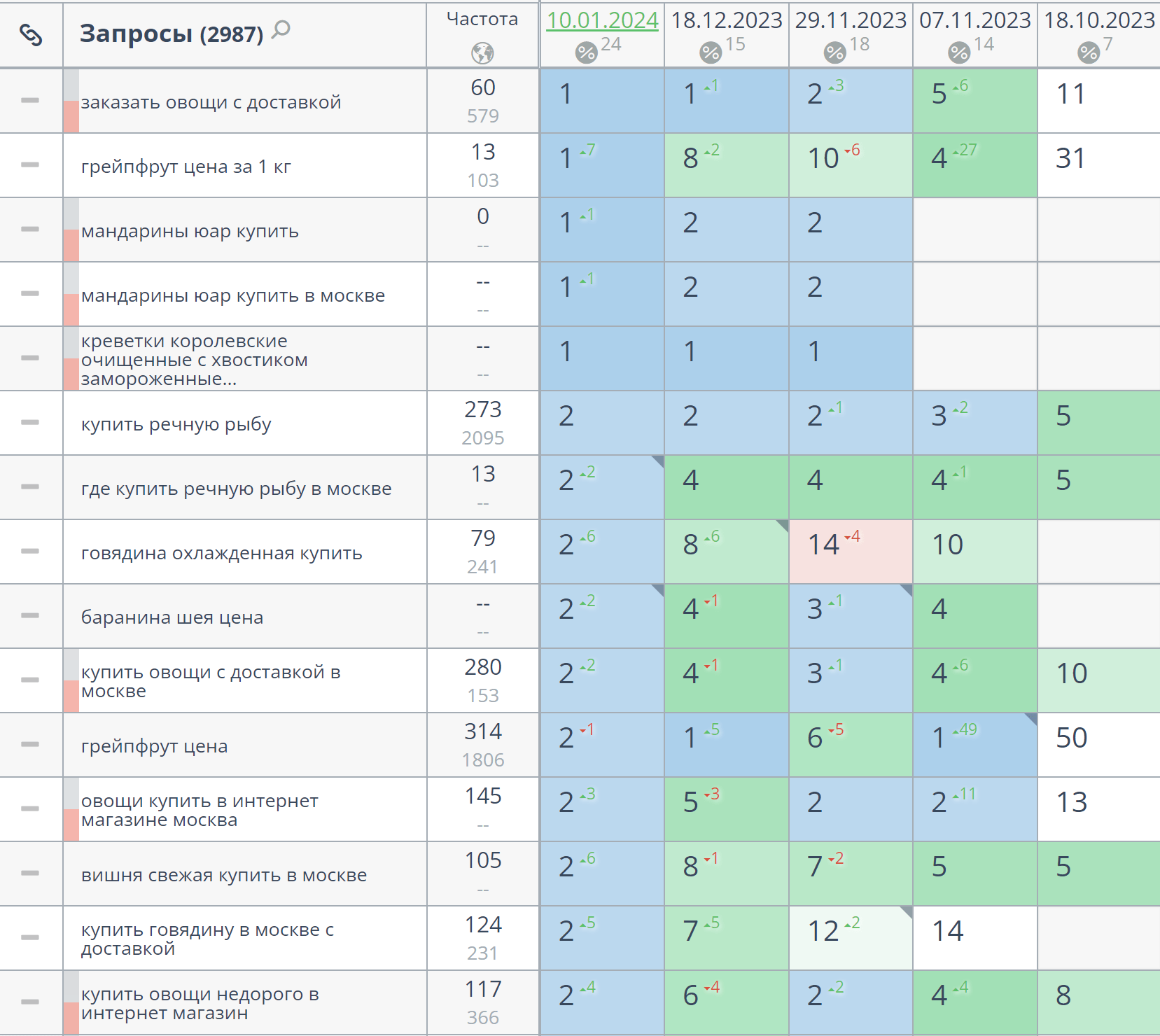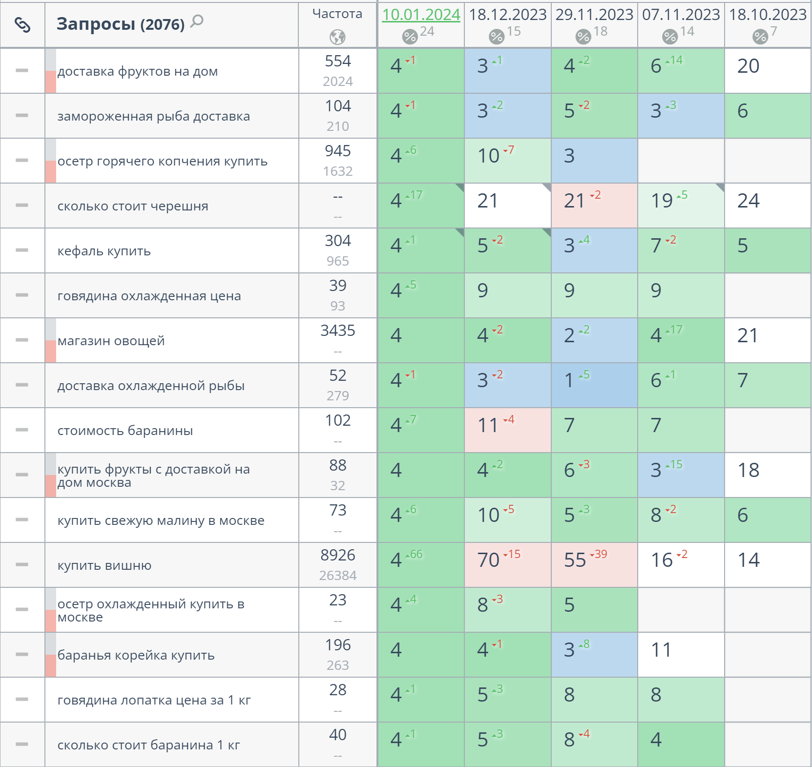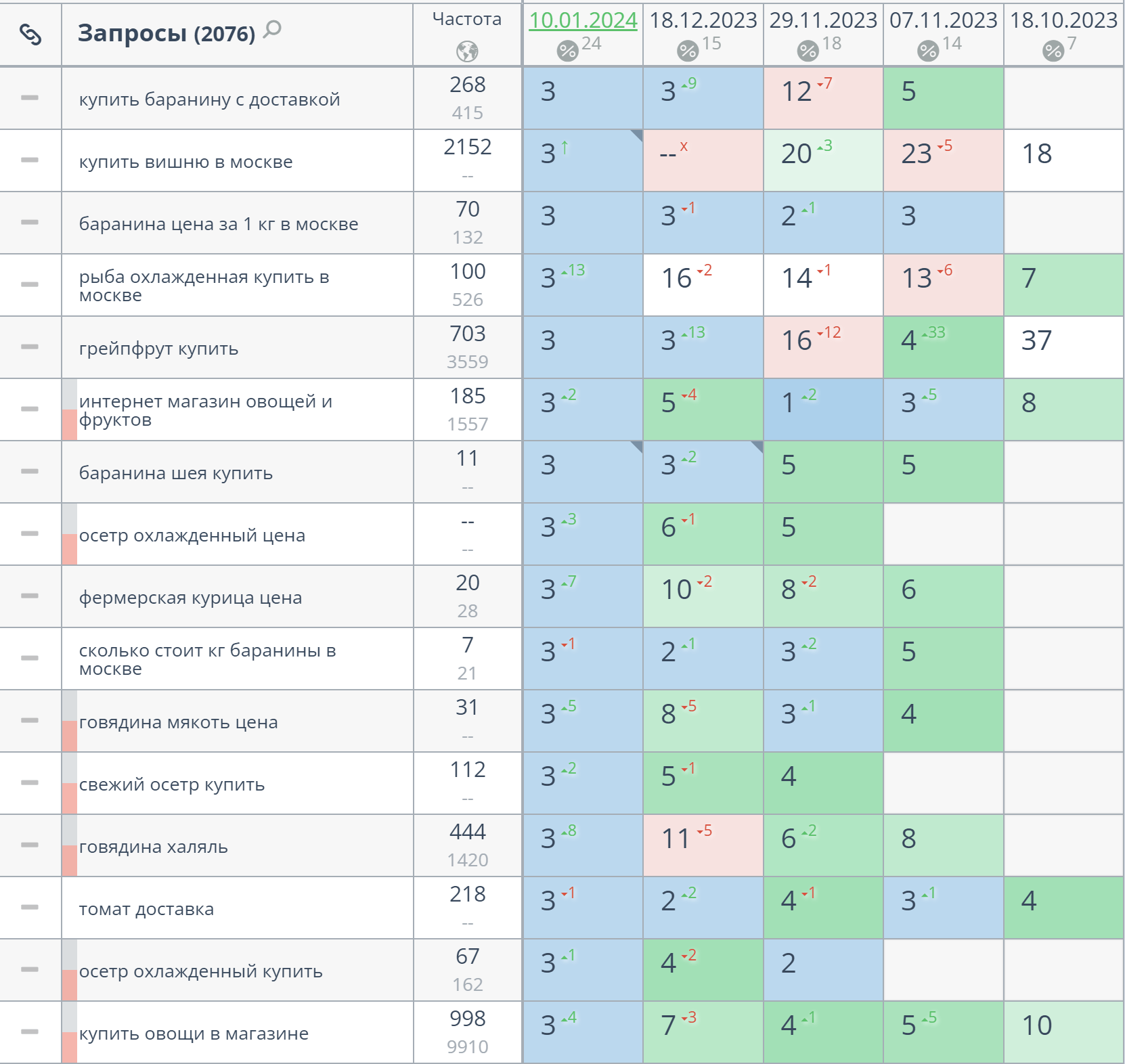 Нет смысла пытаться продвигать условные «красные ягоды», если все конкуренты сосредоточены на «сезонных ягодах». Но это не аксиома, постоянный мониторинг позиций и анализ ниши поможет с индивидуальными рекомендациями под конкретный проект.
