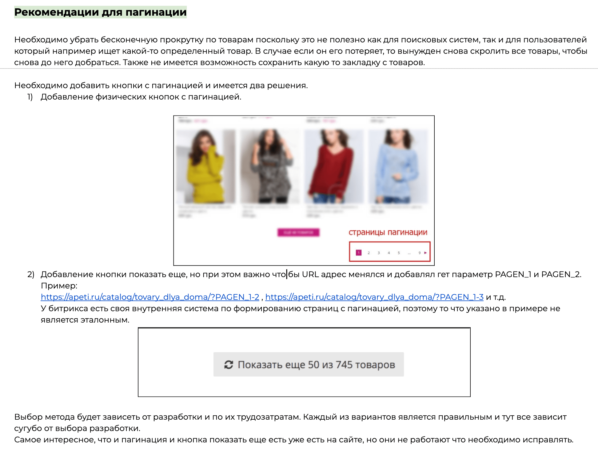 Рекомендации для пагинации можно почитать в тех.аудите, ссылка дана выше