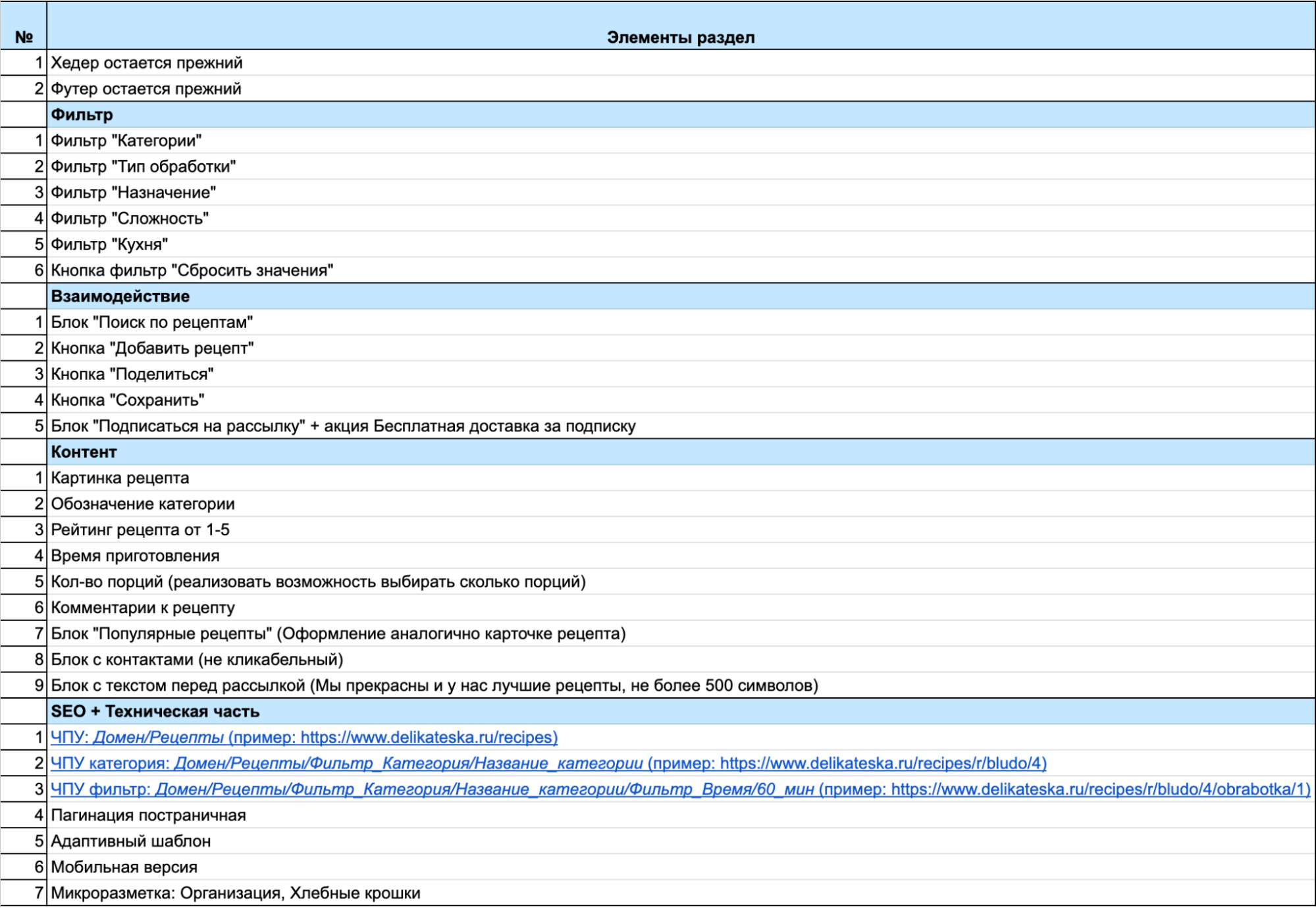 Посмотреть ТЗ на страницу рецептов можно тут.