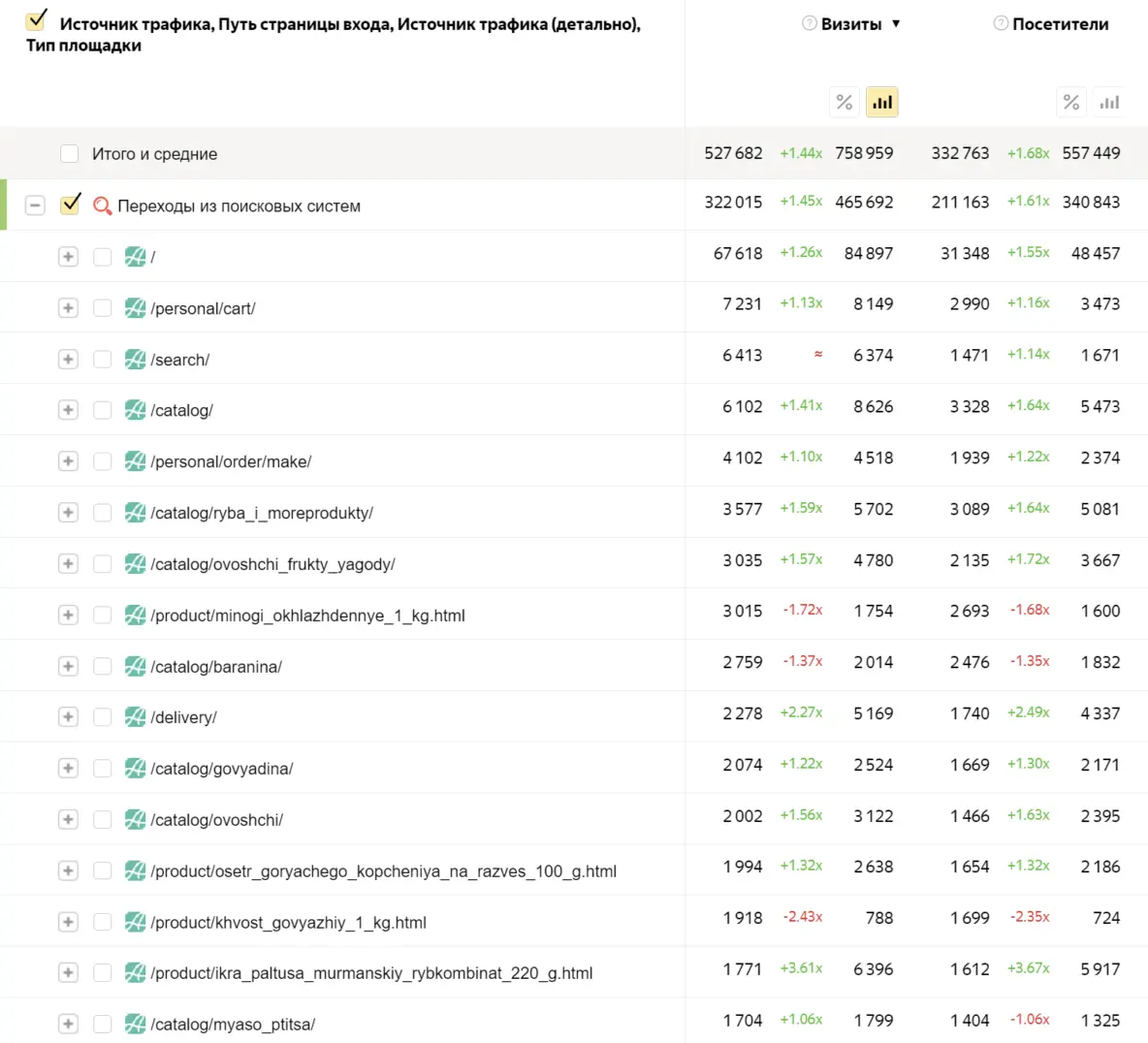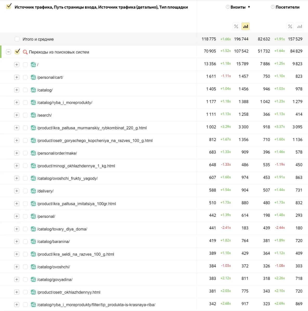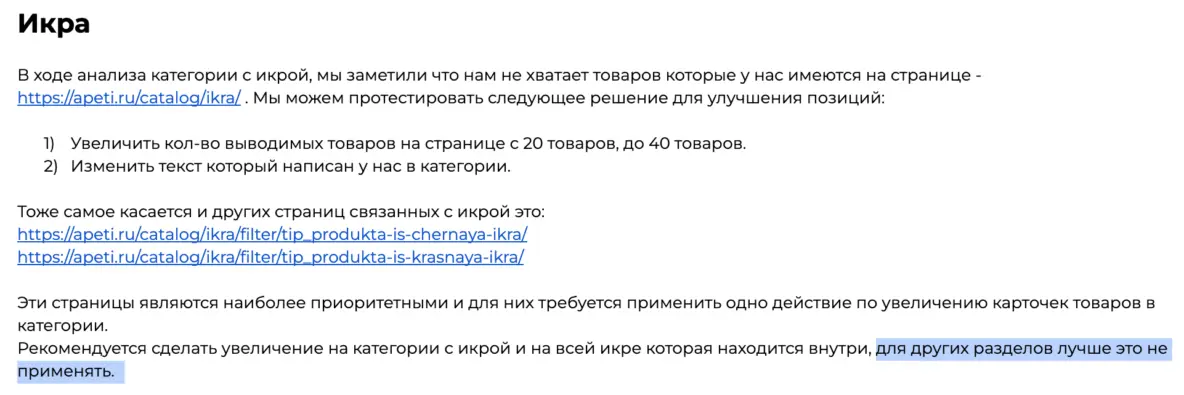 - Провели плановый технический аудит, и дали рекомендации по переезду некоторых страниц из раздела «Икра».