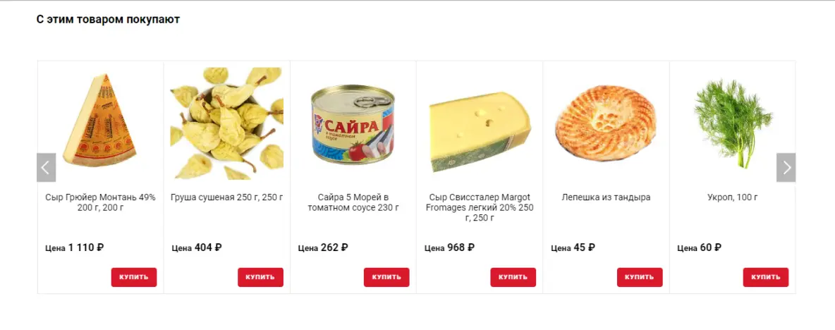 - Внедрить блок «С этим товаром часто покупают» — мы заметили, что у конкурентов реализован листинг товаров, которые схожи по тематике. Таким образом категория выглядит гораздо объемней, даже если в ней на самом деле меньше товаров.