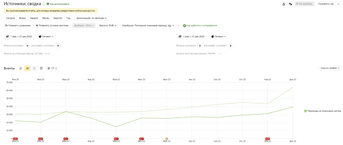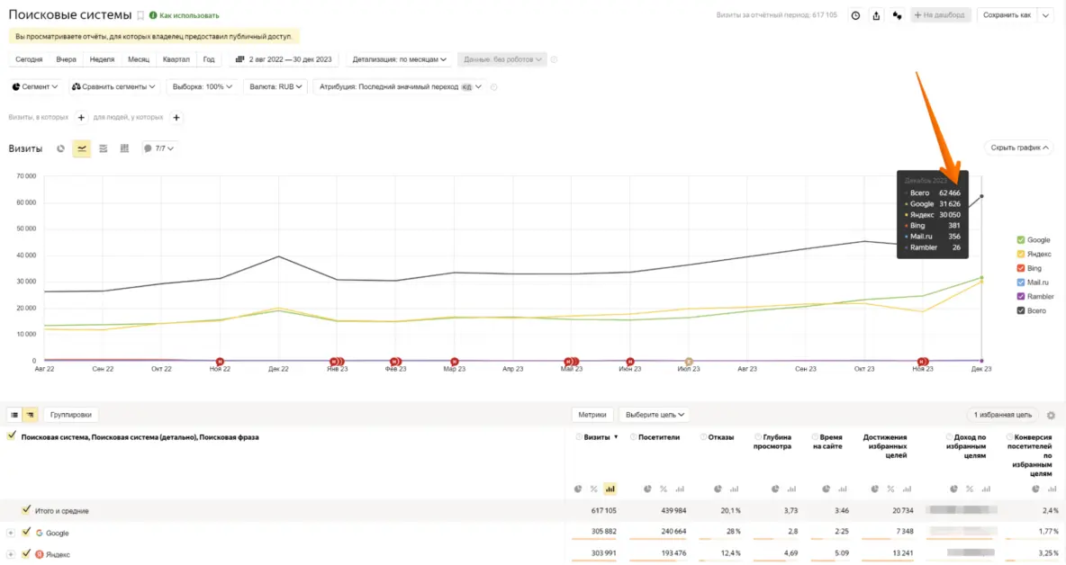 Новогодний рост составил 30к визитов из Яндекса и 62к визитов суммарно