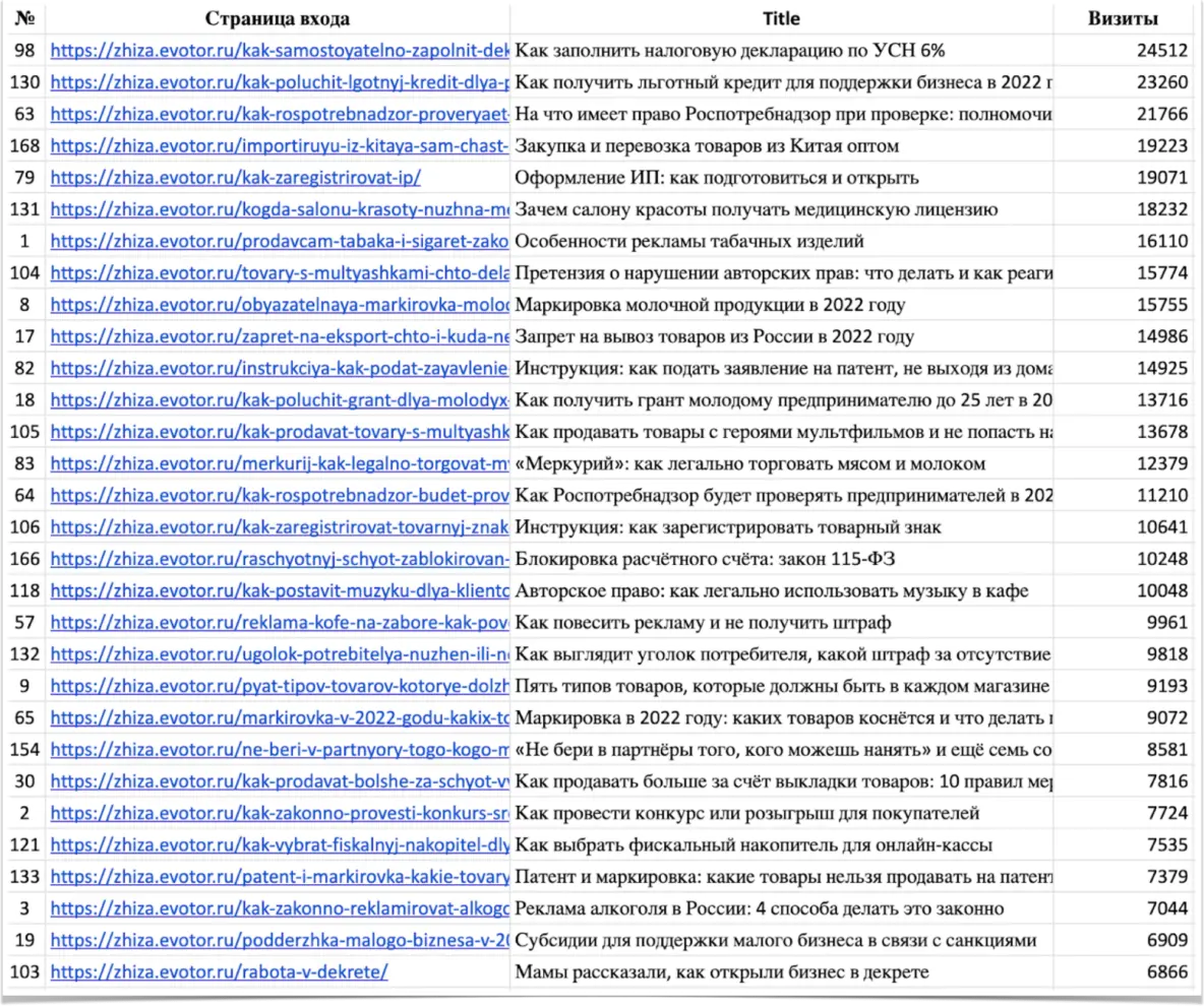 Что характерно, уже на старте мы провели ревизию нескольких статей, которые отлично отрабатывают как в контекстной рекламе, так и в Дзене/ПСЯ*.