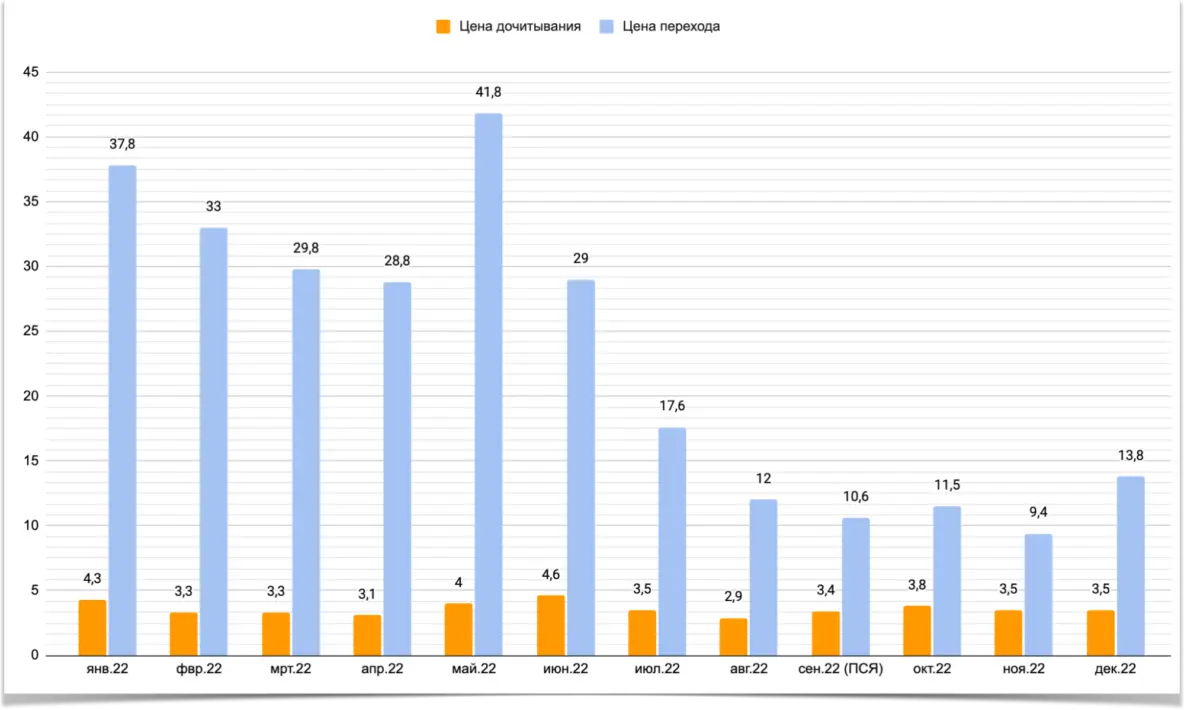 В отличие от SEO-трафика «Жизы», показать в Дзене непрерывный рост сложно. Даже объяснить причины колебаний было бы непросто, да уже и не так важно. Дзен более уже не принадлежит Яндексу, реклама в нем явно будет работать иначе (и неизвестно когда), так что наш опыт в этой нише — уже часть истории.