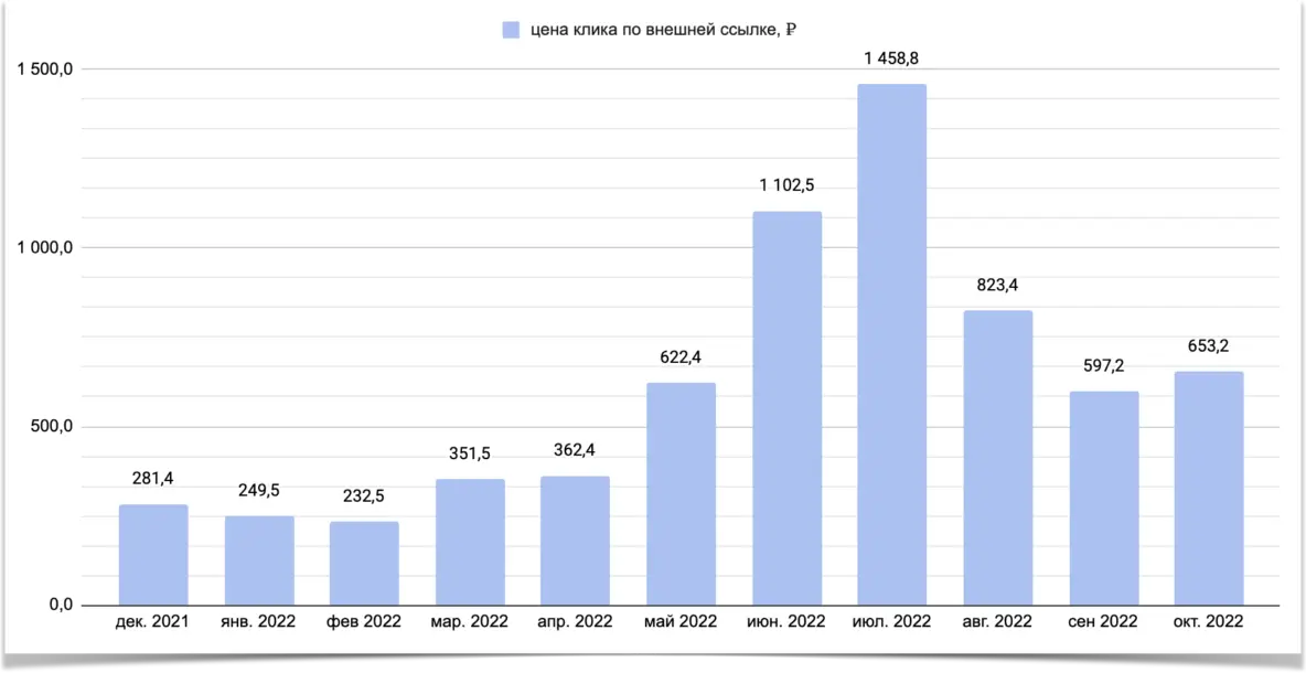 Но где-то с апреля-мая при тех же настройках и той же аудитории количество кликов по внешним ссылкам резко упало (и, соответственно, клик подорожал).