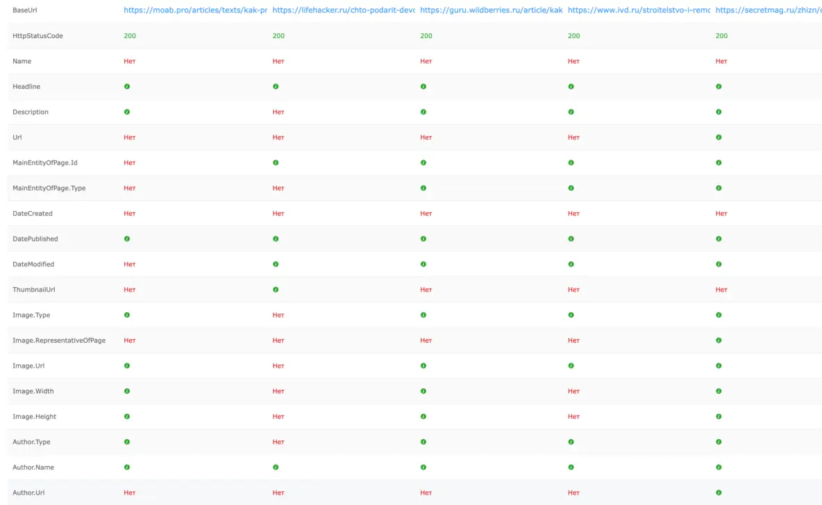 Мы для своих нужд сделали сервис, который анализирует микроразметку Articles на сайтах (до 5 страниц за сеанс), и выложили его в паблик бесплатно: MarkupsComparison.