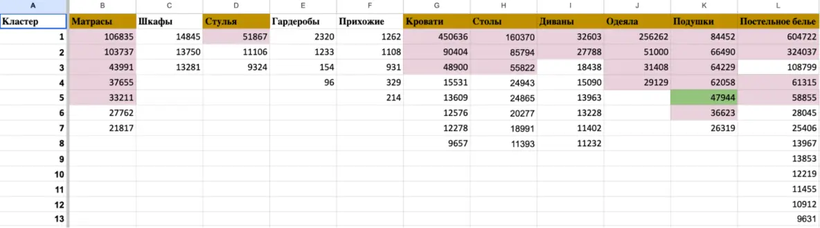 → собираем (инфо) ядро по всем товарным направлениям,
