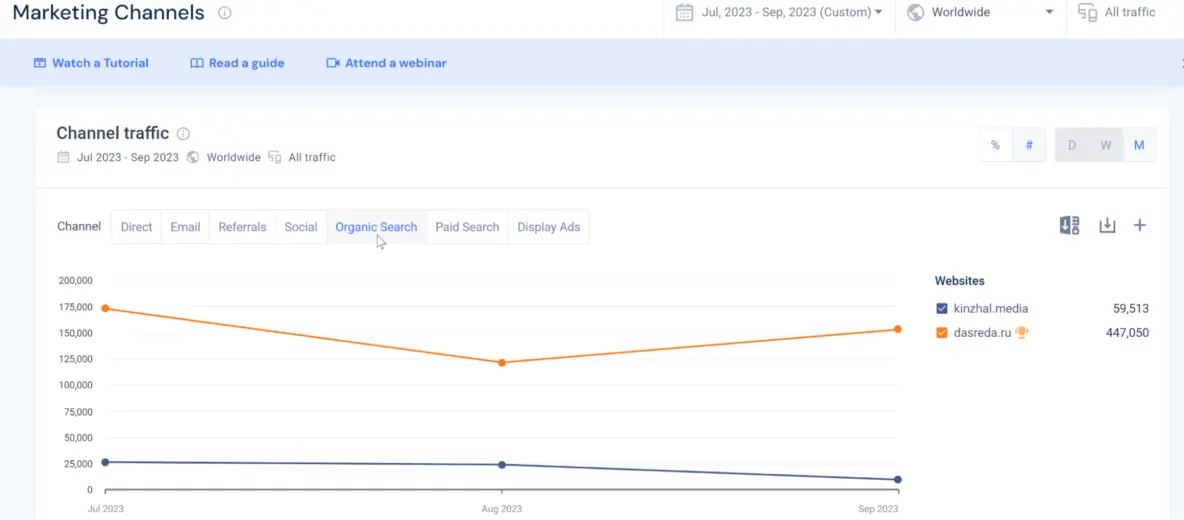 Сравнение органического трафика (здесь и далее — данные из Симиларвеб)