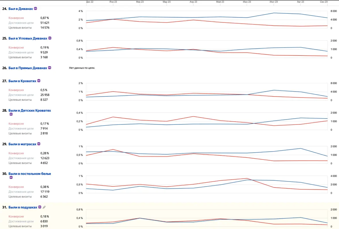 В итоге начали расти переходы в товарные категории, переходы на страницы товаров и контактов: