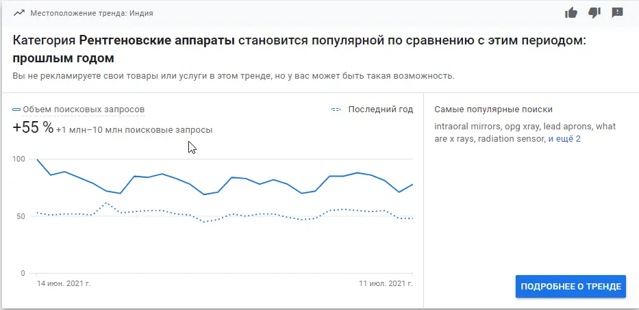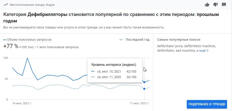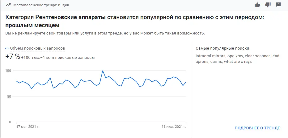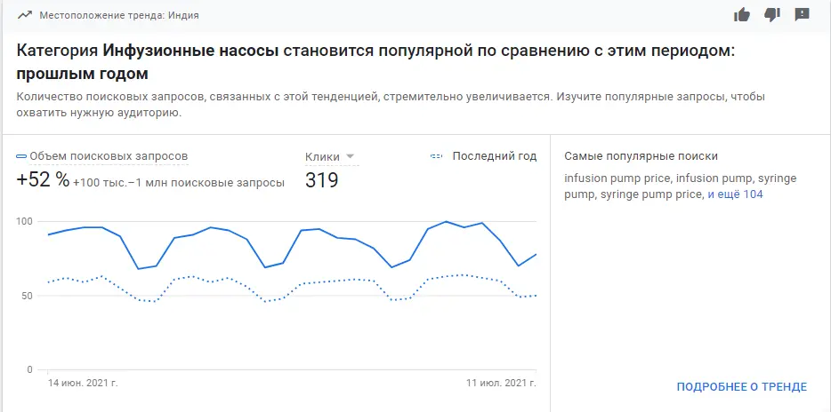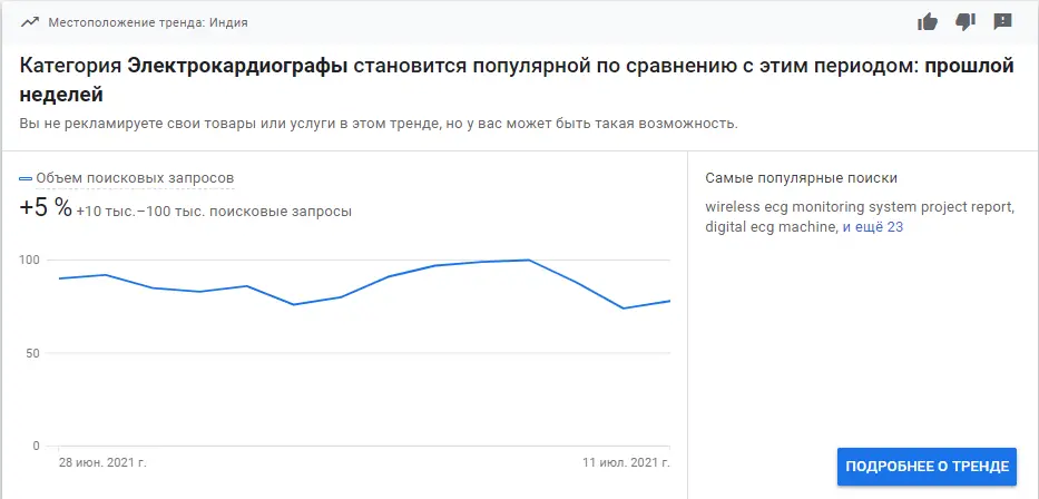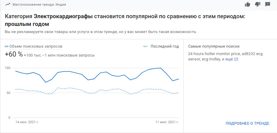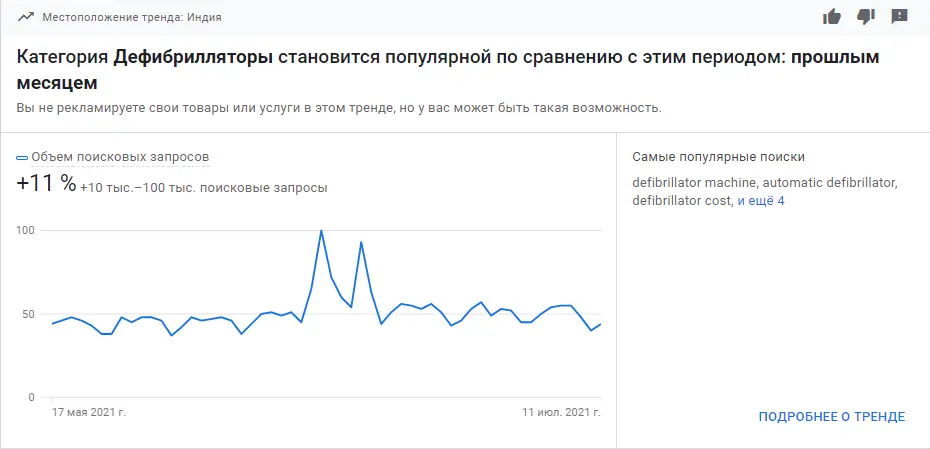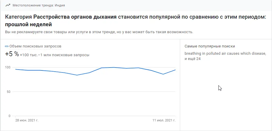 Вот единственное из трендов, что может подойти. Но здесь очень сильно размыты границы (от бронхита до ковида). При дальнейшем продвижении стоит уделить максимальное внимание семантическому тождеству. За счет детальной проработки входящего трафика получится значительно улучшить показатели CPA.