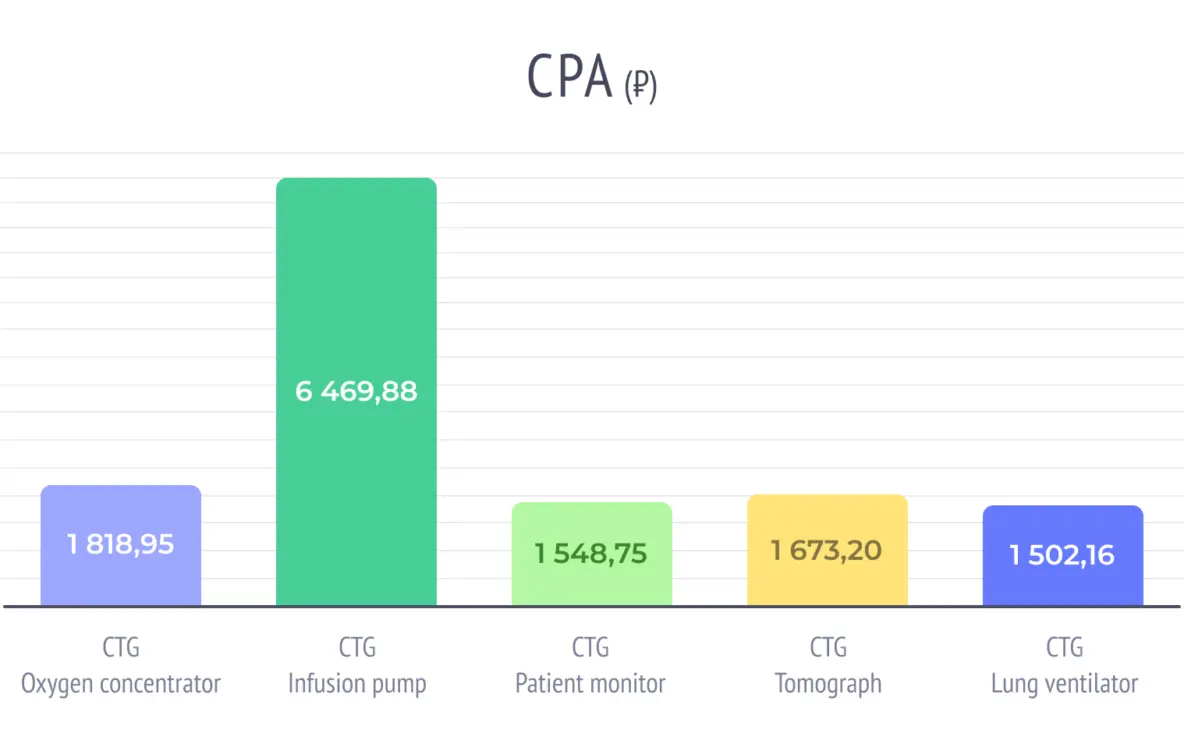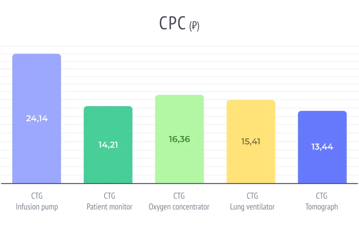 А вот с томографами ситуация обратная. Томографы дорогие, один-два томографа на больницу — это уже хорошо. Так что особого спроса не ожидалось. А в итоге это один из лидеров по цене и по количеству заявок. Собственно, тут получились низкие СРС, CТR, CR — и направление можно считать одним из перспективных.