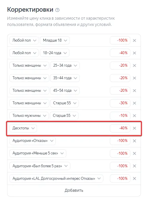 У нас стоит выбор — сделать красивую картинку в виде снижения цены лида за счет десктопа, или оставить как есть, тем самым не снизив доход клиента. Вот как будет выглядеть первый вариант: