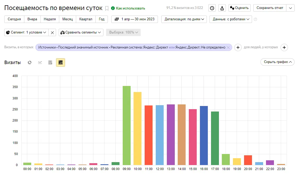 Далее у него выбор — оставить заявку на сайте, который он открыл 15 секунд назад, или на сайте, где он все уже прочел и знаком с ним. Именно так это и работает. Мы наблюдали это на практике. Показываться на 1-м месте в течение пары часов было в разы более выгодно, чем получить в 3 раза больше переходов на более низкой позиции за тот же бюджет.