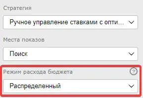 «Прочее» — это показы внизу на Поиске, и цена лида там ниже. Уговариваю заказчика просто снизить ставки, и меняю режим бюджета на стандартный.