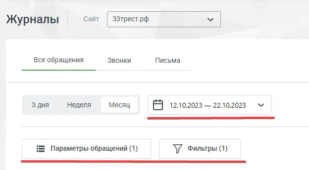 Выставляем фильтр, чтобы видеть только звонки с рекламы:
