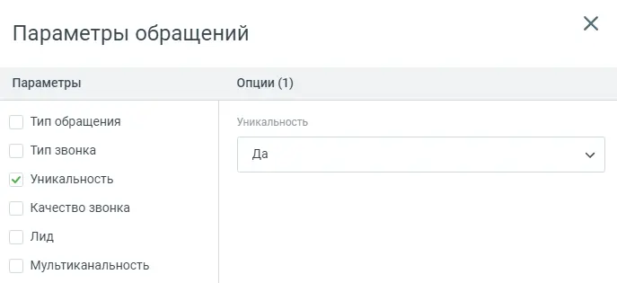 И конечно нам нужны только уникальные звонки: