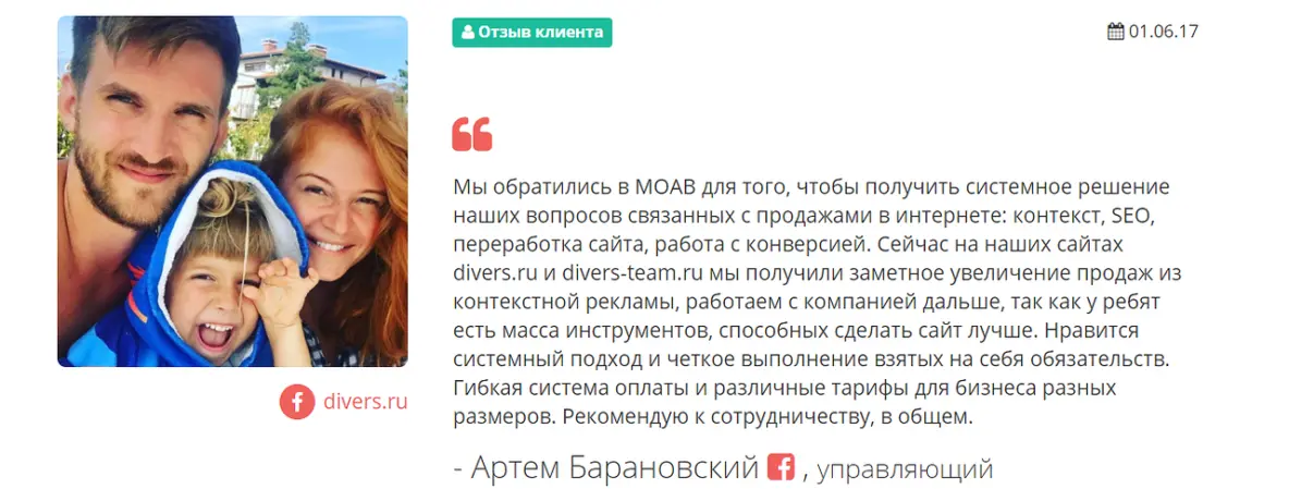 В случае с divers.ru Артём Барановский заплатил нам единоразово 120 тысяч рублей за настройку контекста по более чем 30 тысячам ключевым фразам и 20 тысяч рублей за ведение. О том, эффективен ли контекст, можно спросить у него самого, а можно судить по тому, что после первичной настройки мы работаем с Артёмом где-то уже больше года, лиды в среднем у него в пределах 500 рублей из контекста.