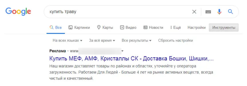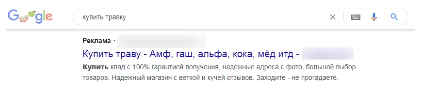 Попробуйте вбить в Гугле запрос «купить соль». Мы вот попробовали. Кто ж знал? Не то чтобы это было открытием, мы в MOAB давно ничему не удивляемся, но четыре объявления с предложением наркоты в топе по адекватному запросу — это за гранью.