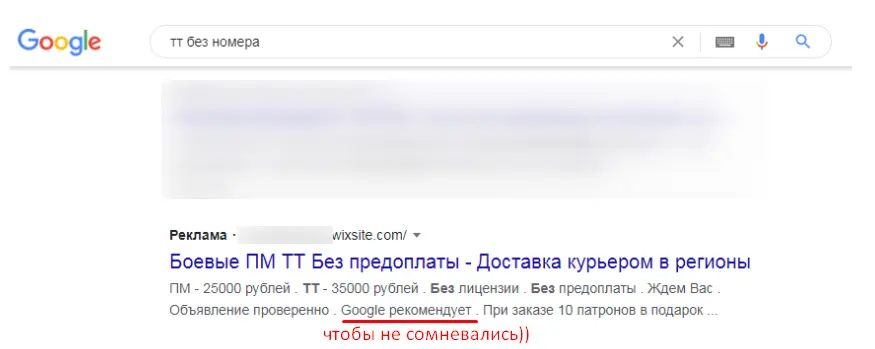 Как оказалось, найти рекламу боевого оружия намного сложнее, чем психотропов, секс-услуг и казино. Но хотелось понять, реально ли вообще что-то подобное.