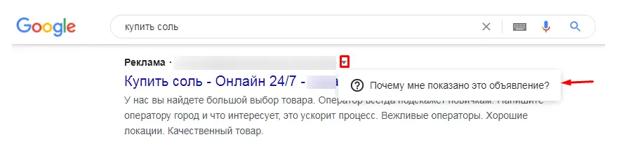 Странно, что в Google Ads не могут победить засилье соляных дел мастеров. Тем более что это популярный запрос, которым исписаны чуть ли не все заборы страны. Тот же Яндекс справляется с фильтрацией «соли» намного лучше: