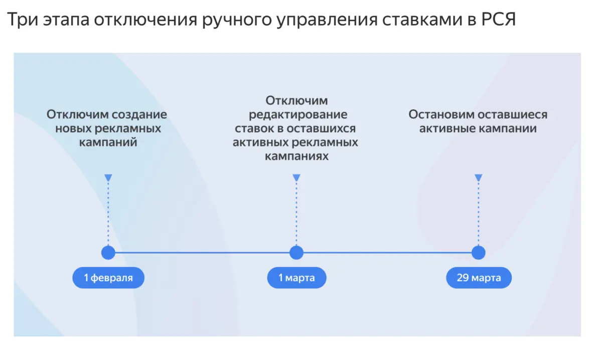 Это скрин из новости Яндекса Ручное управление ставками в РСЯ будет отключено весной 2023 года. Дальше можете почитать сами.