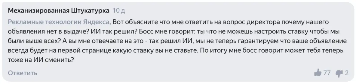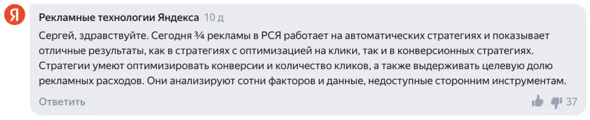 В процессе дискуссий с коллегами по отрасли и специалистами на стороне заказчиков были выдвинуты некоторые предположения — почему Яндекс отключает ручное управление.