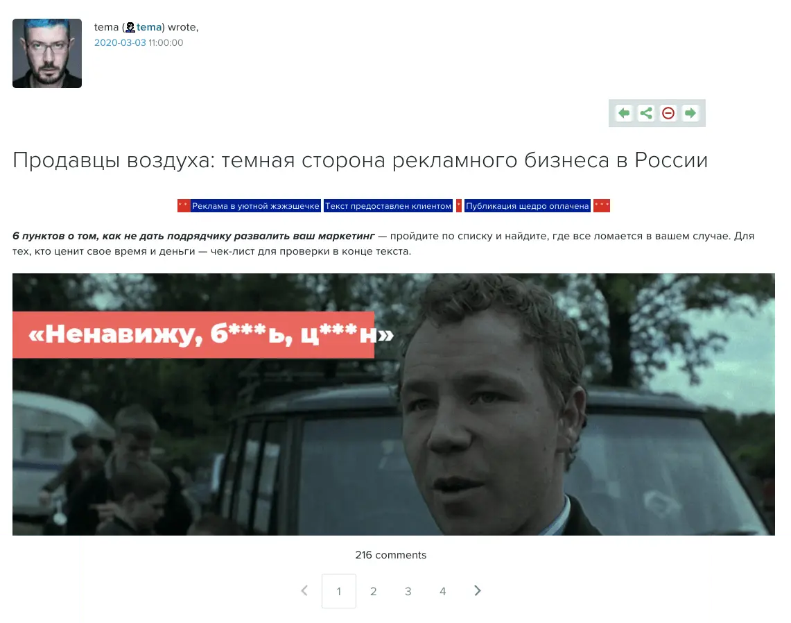Важно понимать, что все, кто не попадает в портрет ЦА, могут реагировать на статью как угодно. При публикации статей в ЖЖ Тёмы Лебедева мы обычно получаем массу флуда и хейтерских комментариев. Но — эти люди никогда ничего не купят, их мнение просто разогревает пост. А правильные читатели обычно в комменты не вчитываются. Зато видят шлейф дискуссии — это сигнал, что материал интересный.