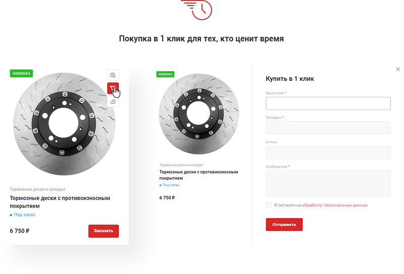 - Перейти в карточку товара и нажать «Купить в один клик». После нажатия нужно заполнить форму и отправить заявку. С вами свяжется менеджер для дальнейшего обсуждения.