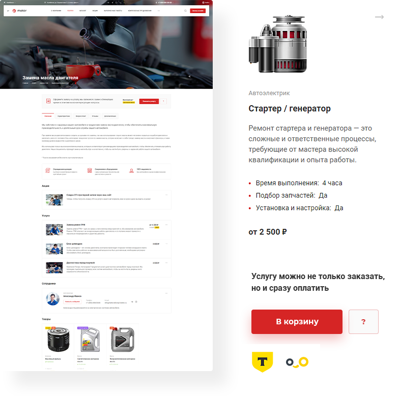 продажа и замена масел и жидкостейПолностью готовый к наполнению сайт на 1С-Битрикс для вашего автосервиса.