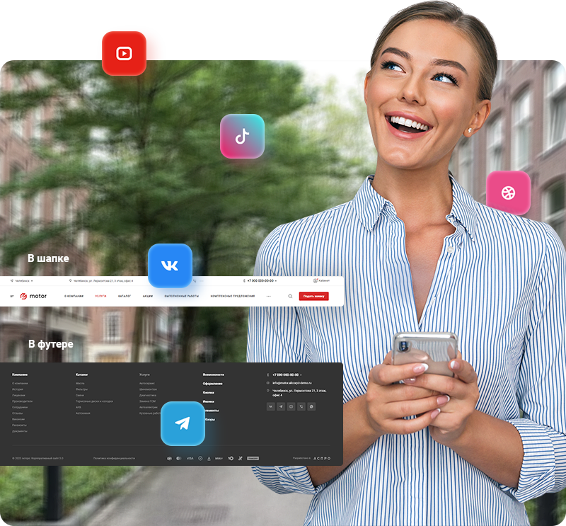 - Подключение ваших контактных данных для вывода на сайте