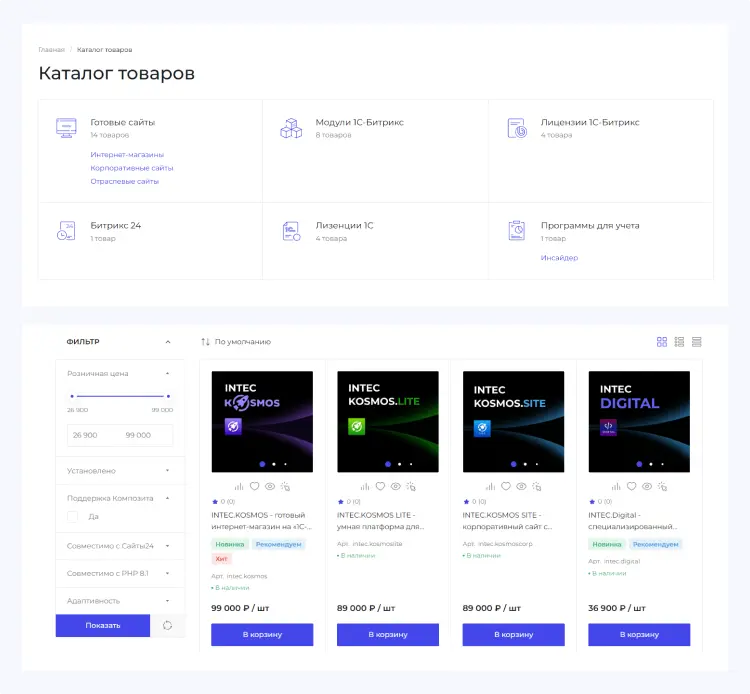 Готовый сайт под ключ за 10 дней на 1С-Битрикс на платформе "INTEC.Digital 2.0". Установка, настройка, готовое решение, лицензия, хостинг - все включено!