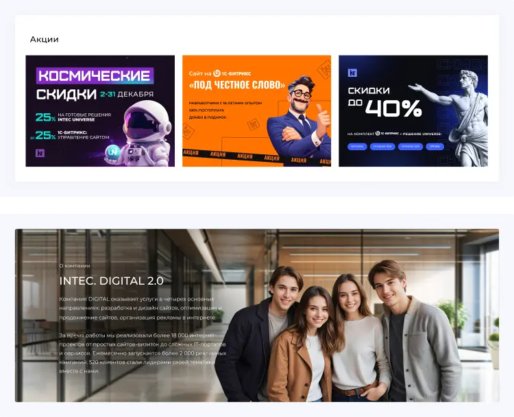 создание и продвижение сайтовПолностью готовый к наполнению сайт на 1С-Битрикс для веб-студий, интернет-агентств и digital-компаний.