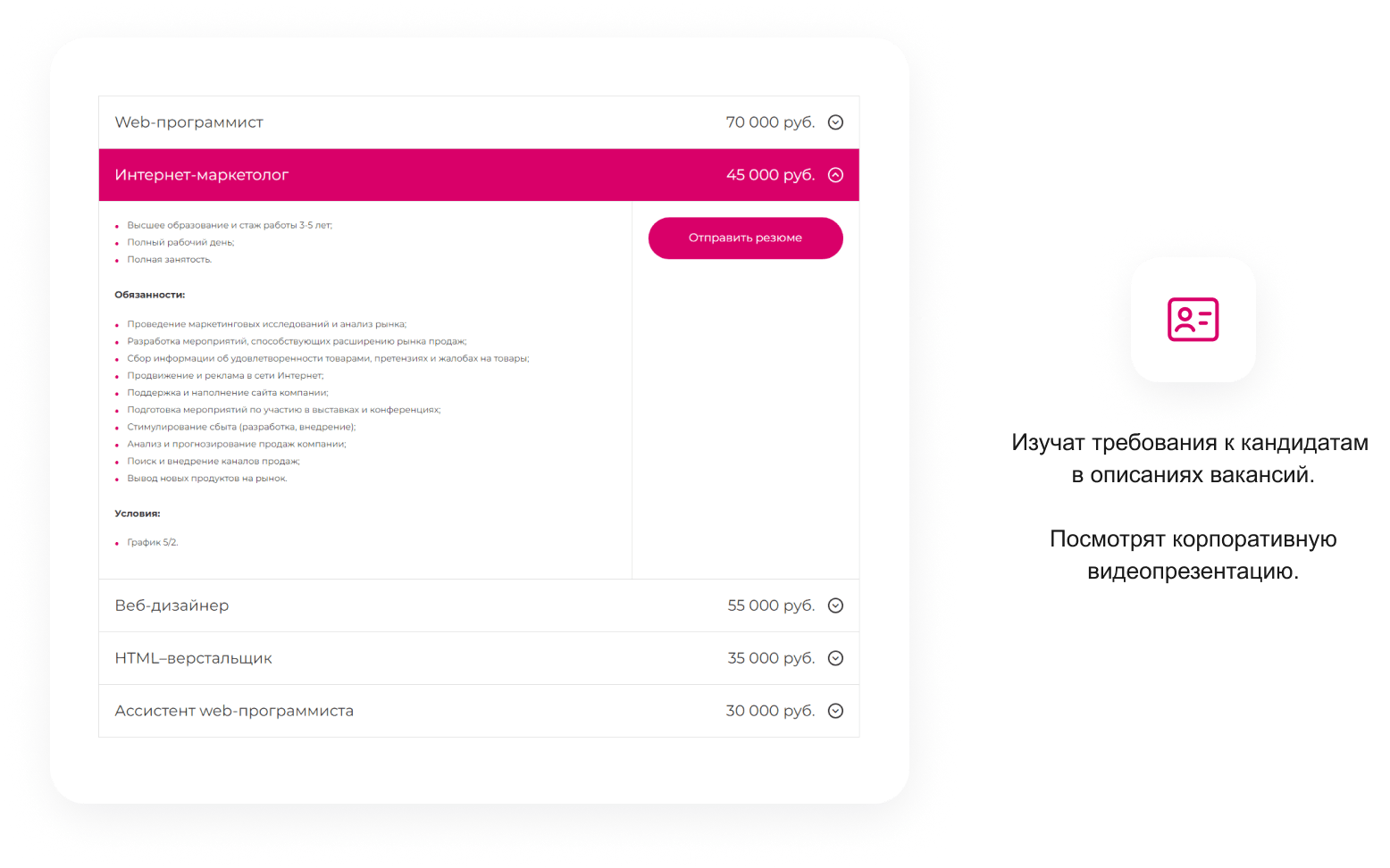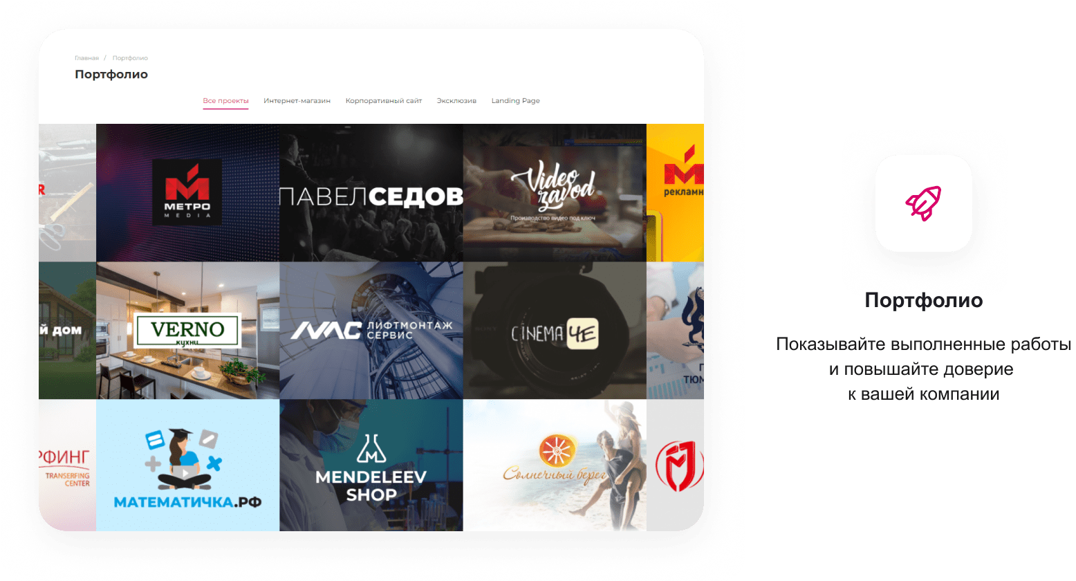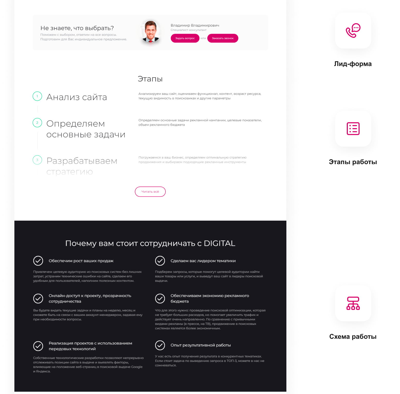 В решении есть все необходимое для digital-бизнеса: от готовых контентных разделов и форм для записи до версии для слабовидящих и набора маркетинговых инструментов.