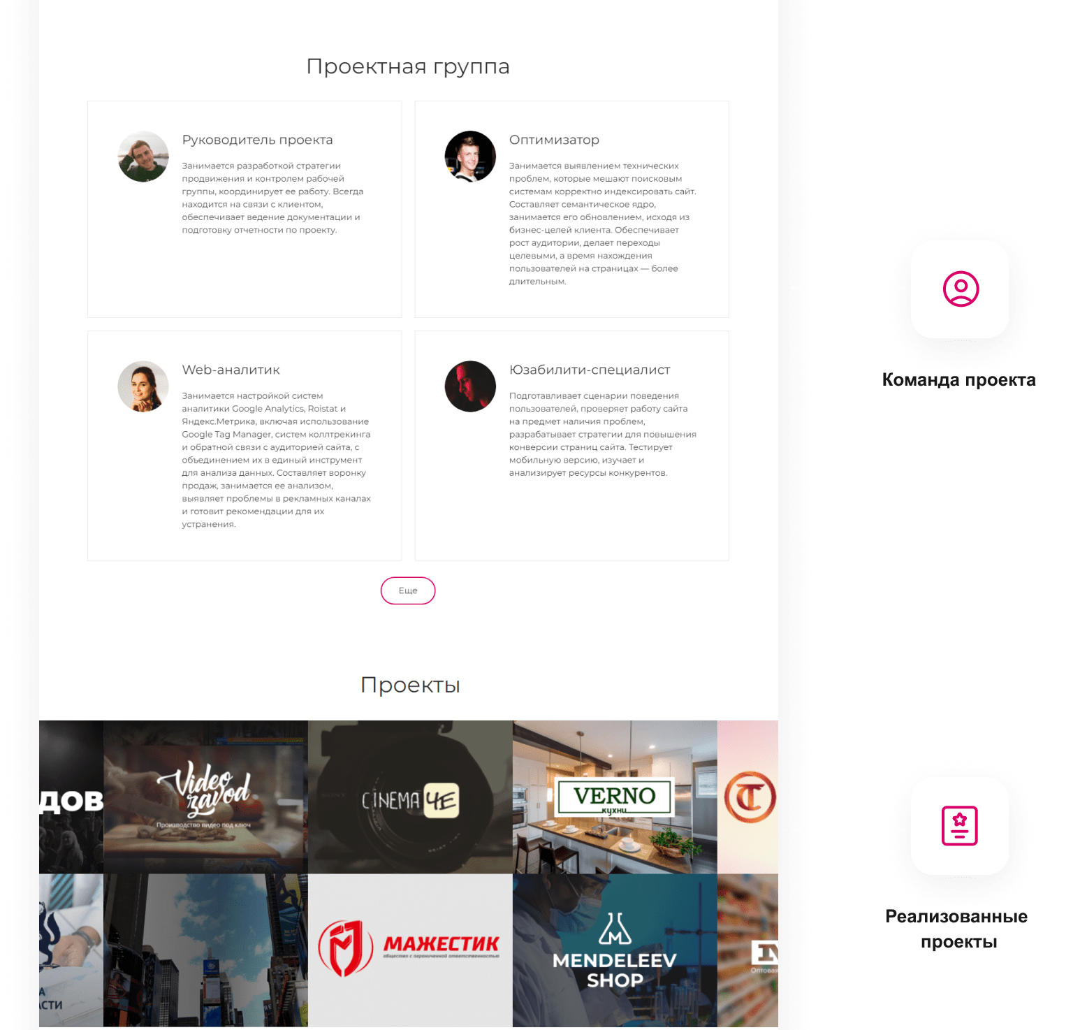 - Проработка структуры сайта: подключим актуальные разделы, отключим ненужные