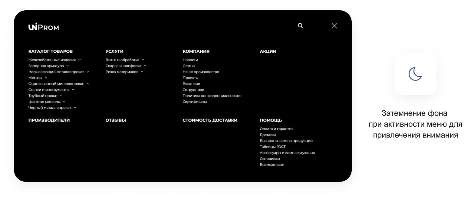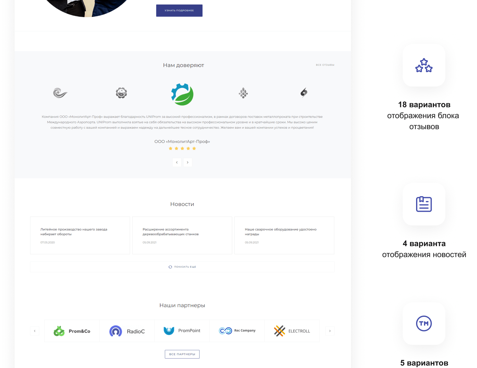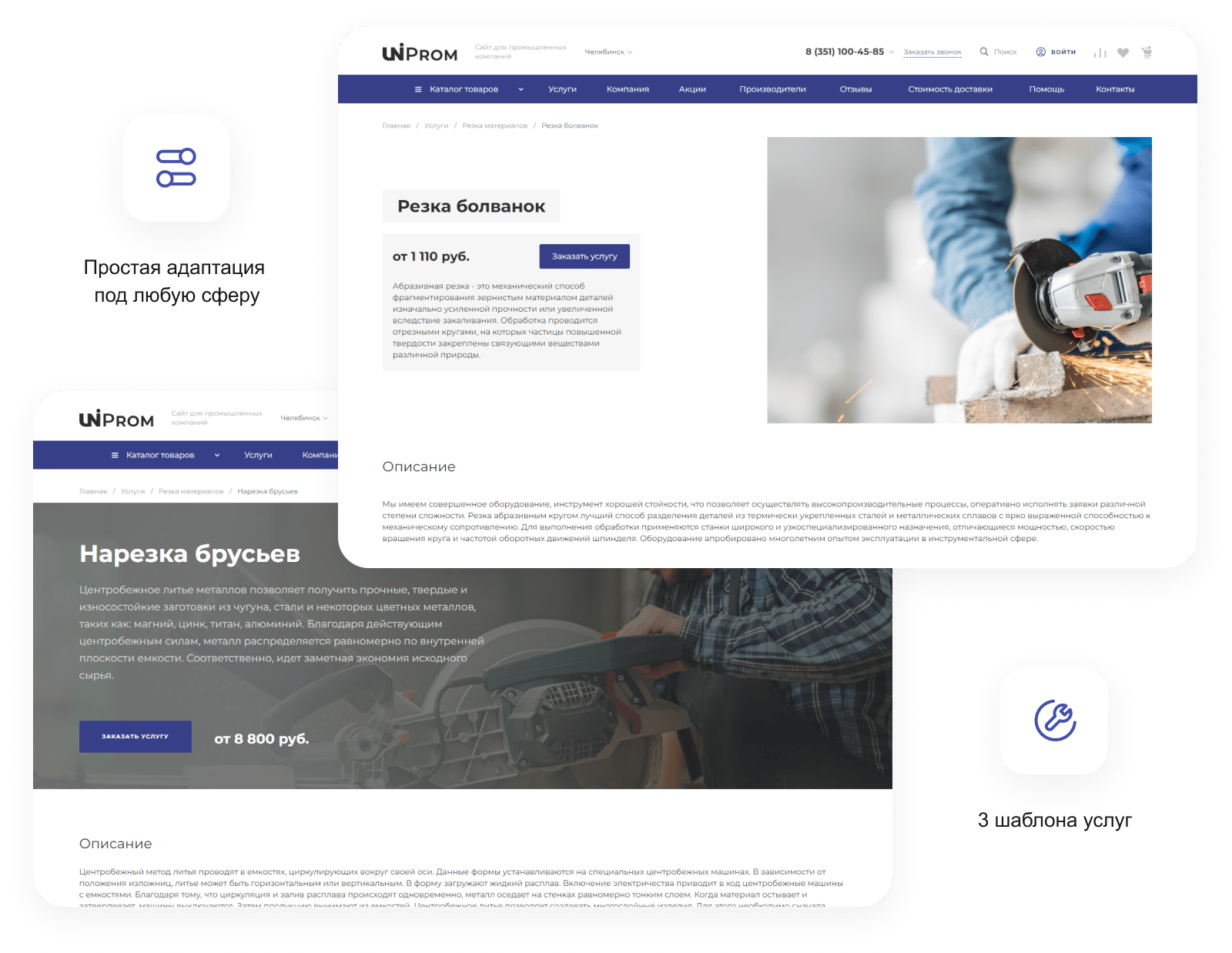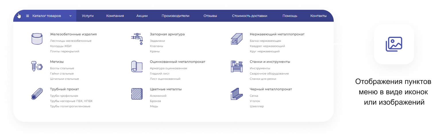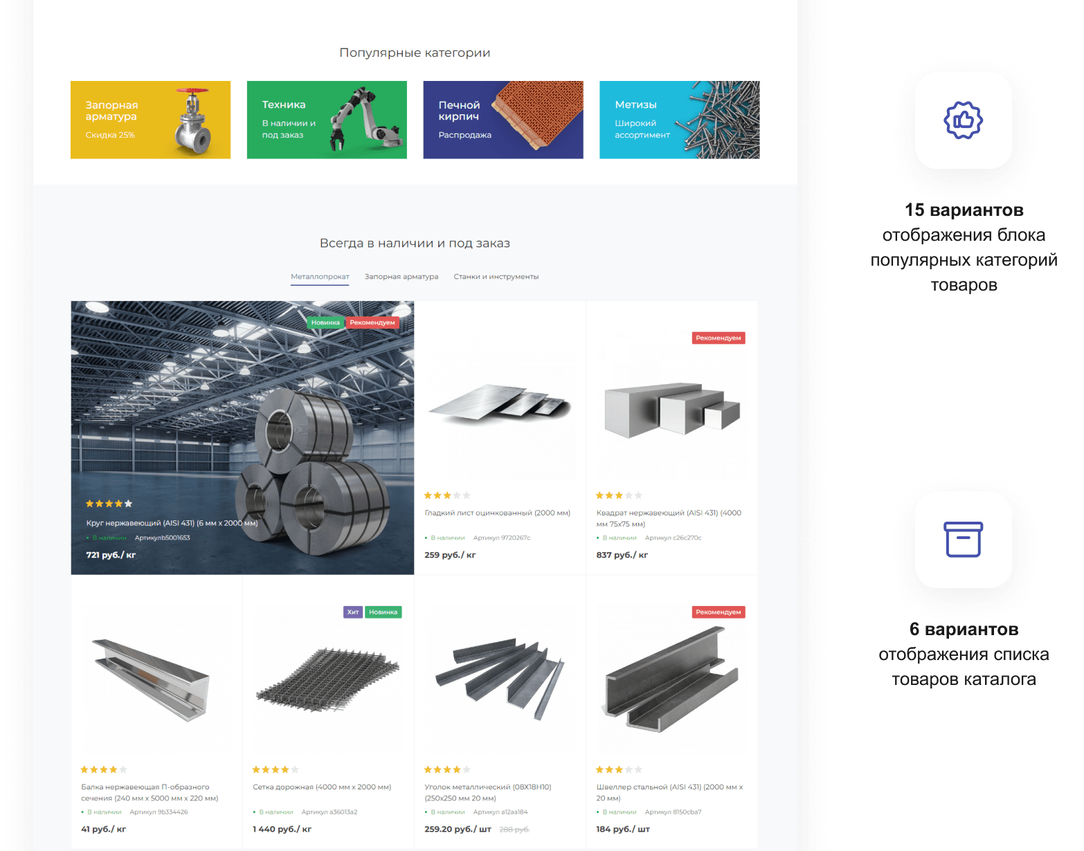 В решении есть все необходимое для сайта металлоторговых и промышленных компаний: от готовых контентных разделов и форм для записи до версии для слабовидящих и набора маркетинговых инструментов.