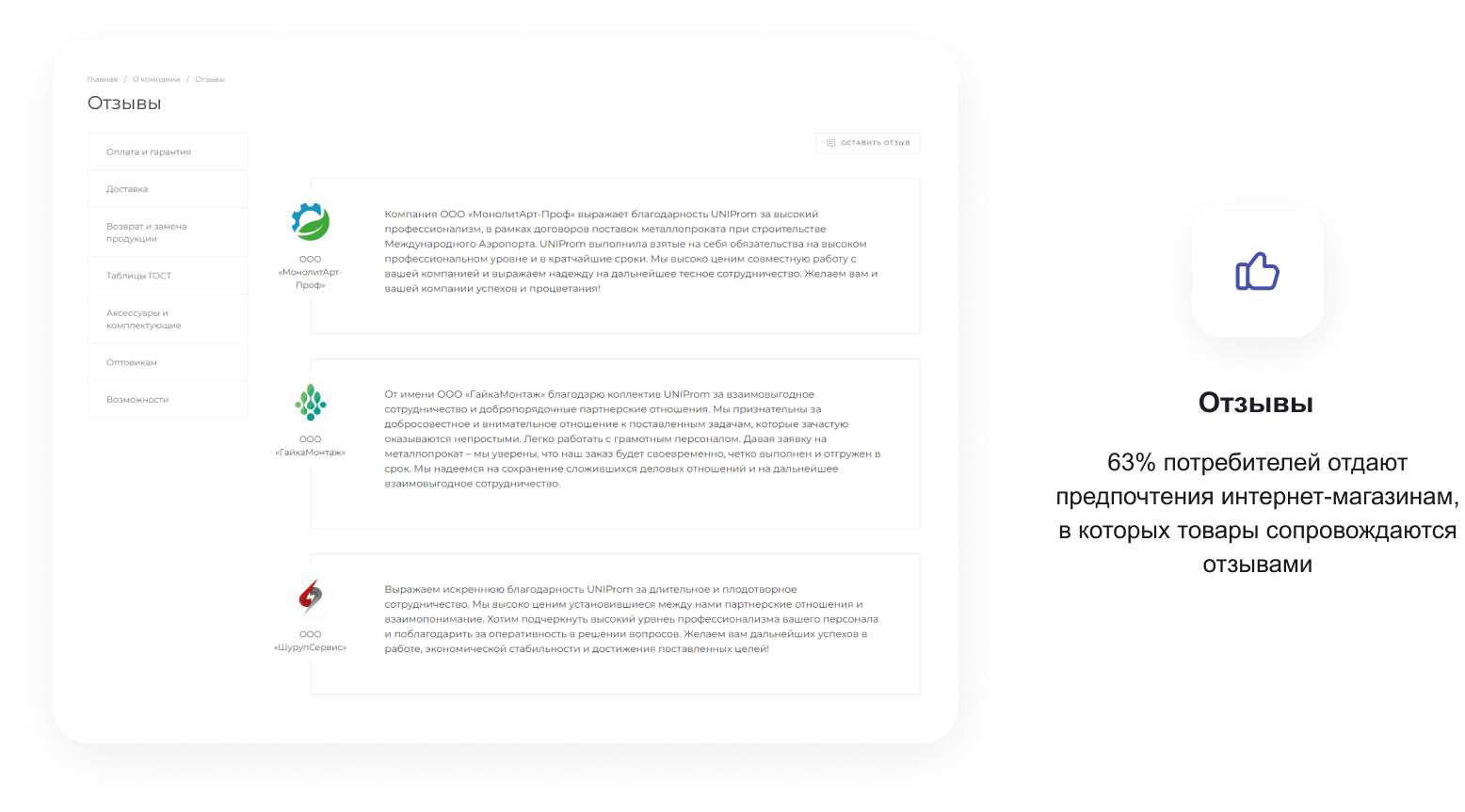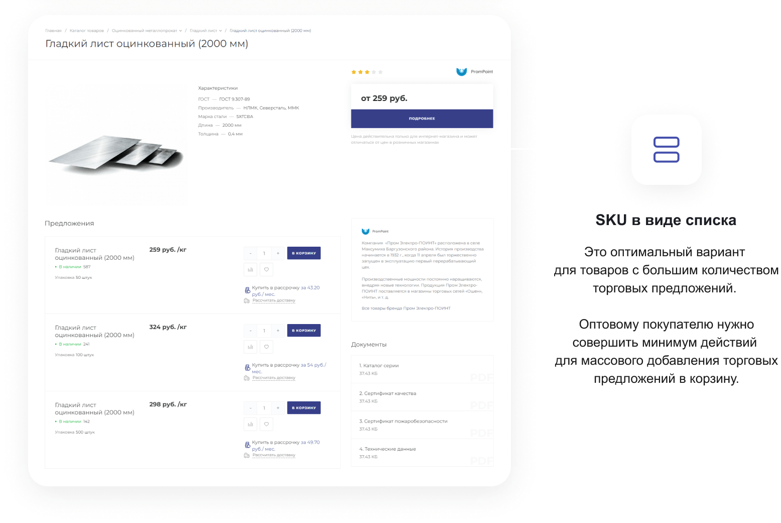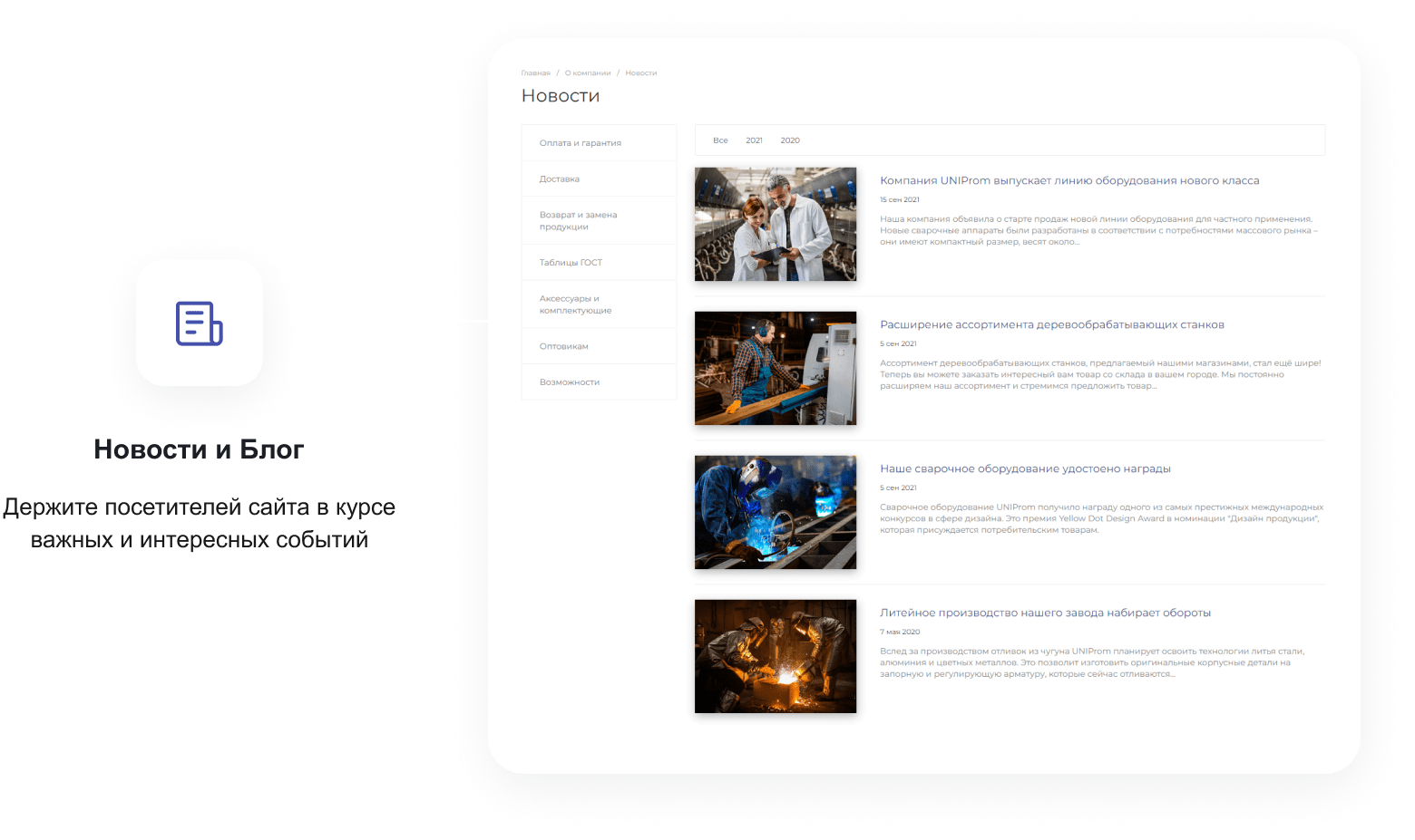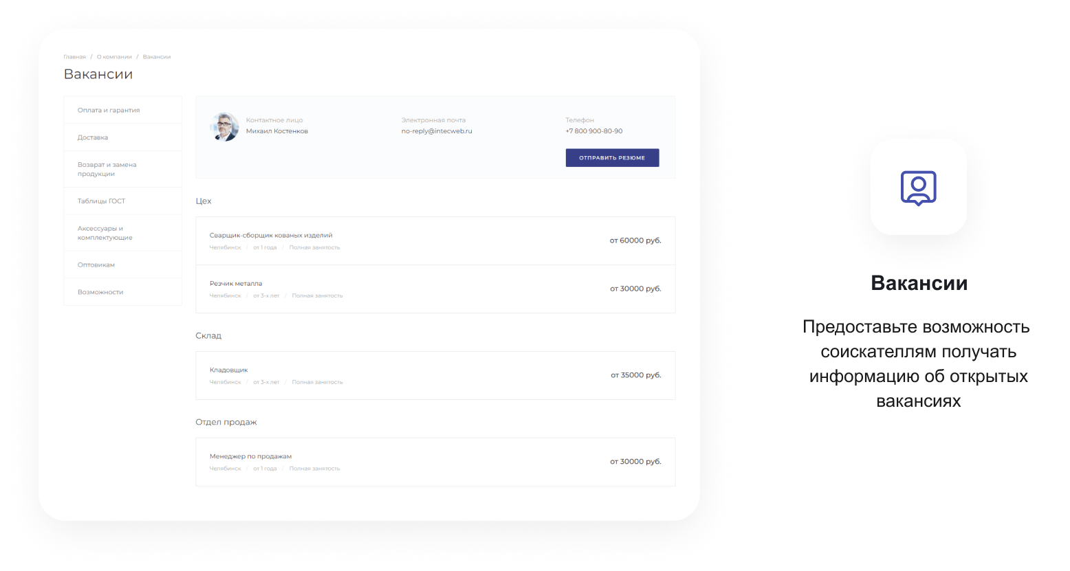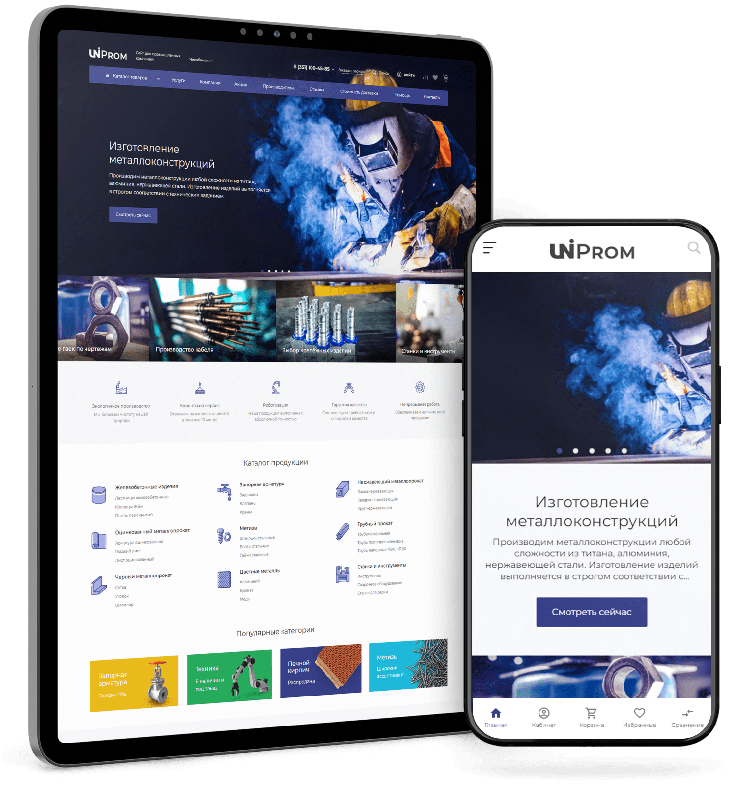 В решении есть все необходимое для сайта металлоторговых и промышленных компаний: от готовых контентных разделов и форм для записи до версии для слабовидящих и набора маркетинговых инструментов.