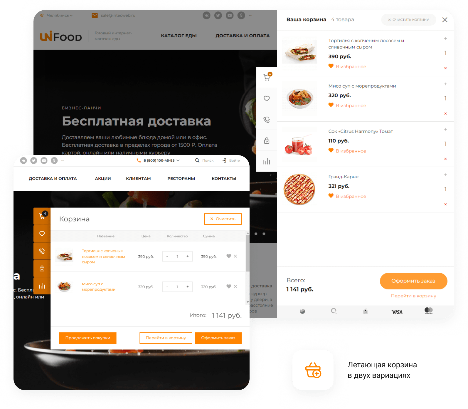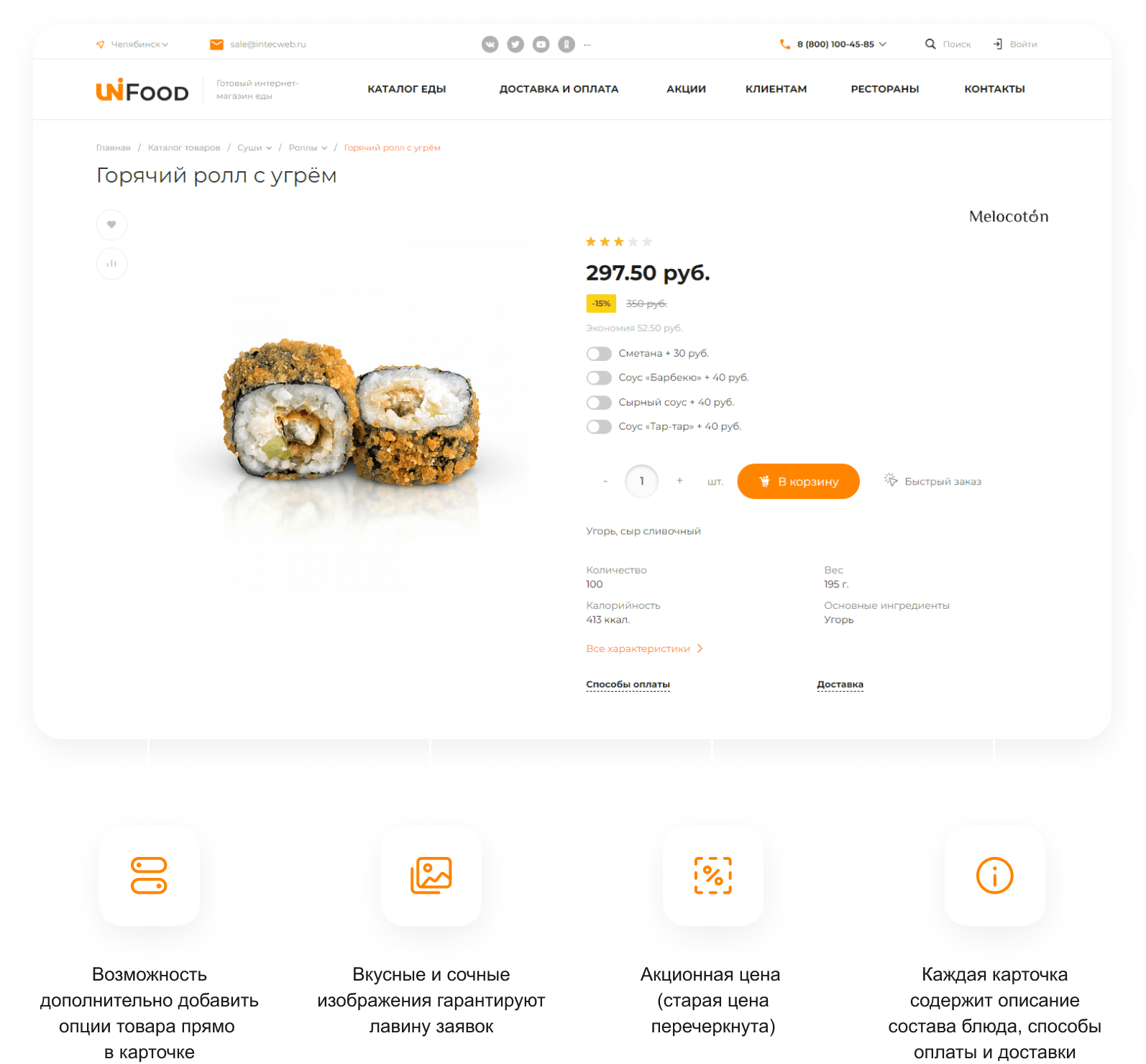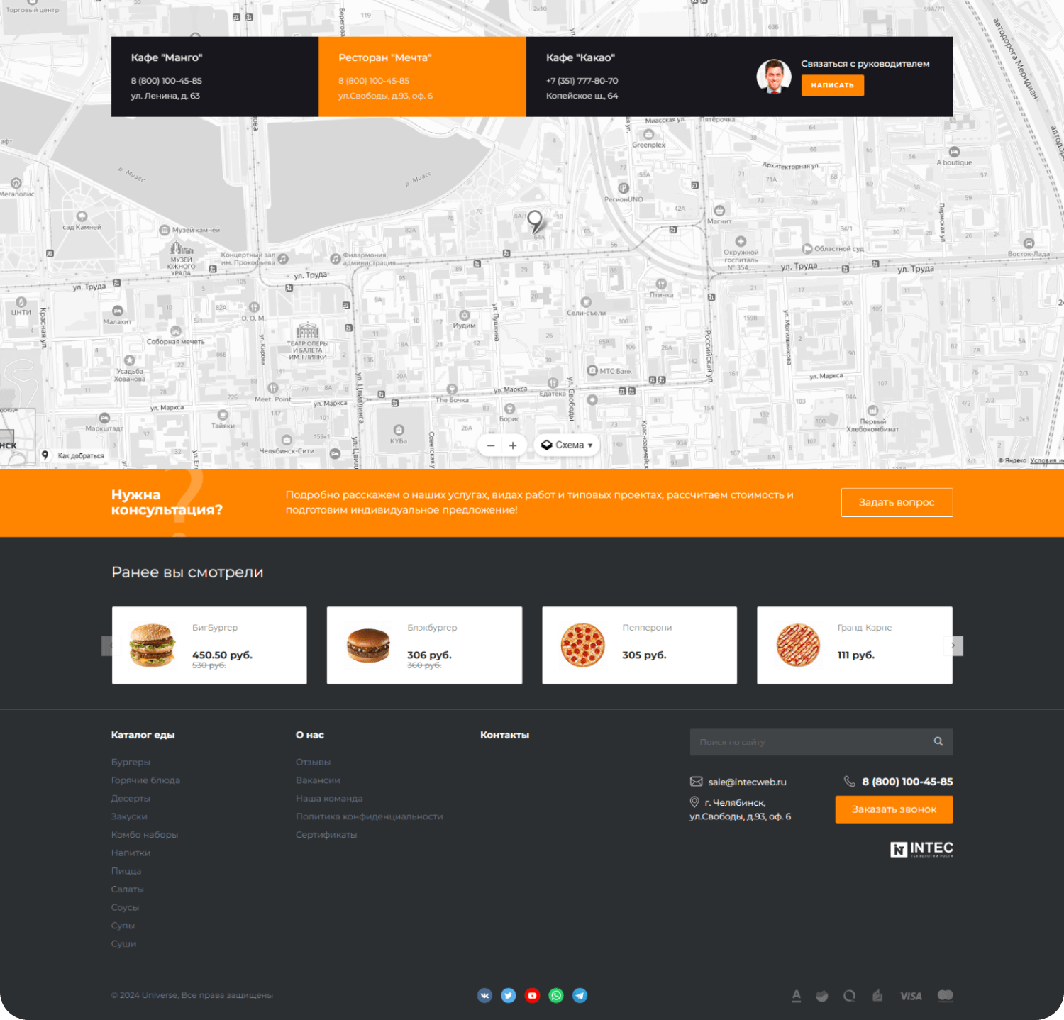 - Готовое решение - шаблон сайта "INTEC.Food - магазин доставки еды, суши, пиццы с корзиной и оплатой. Сайт для ресторанов и кафе"
