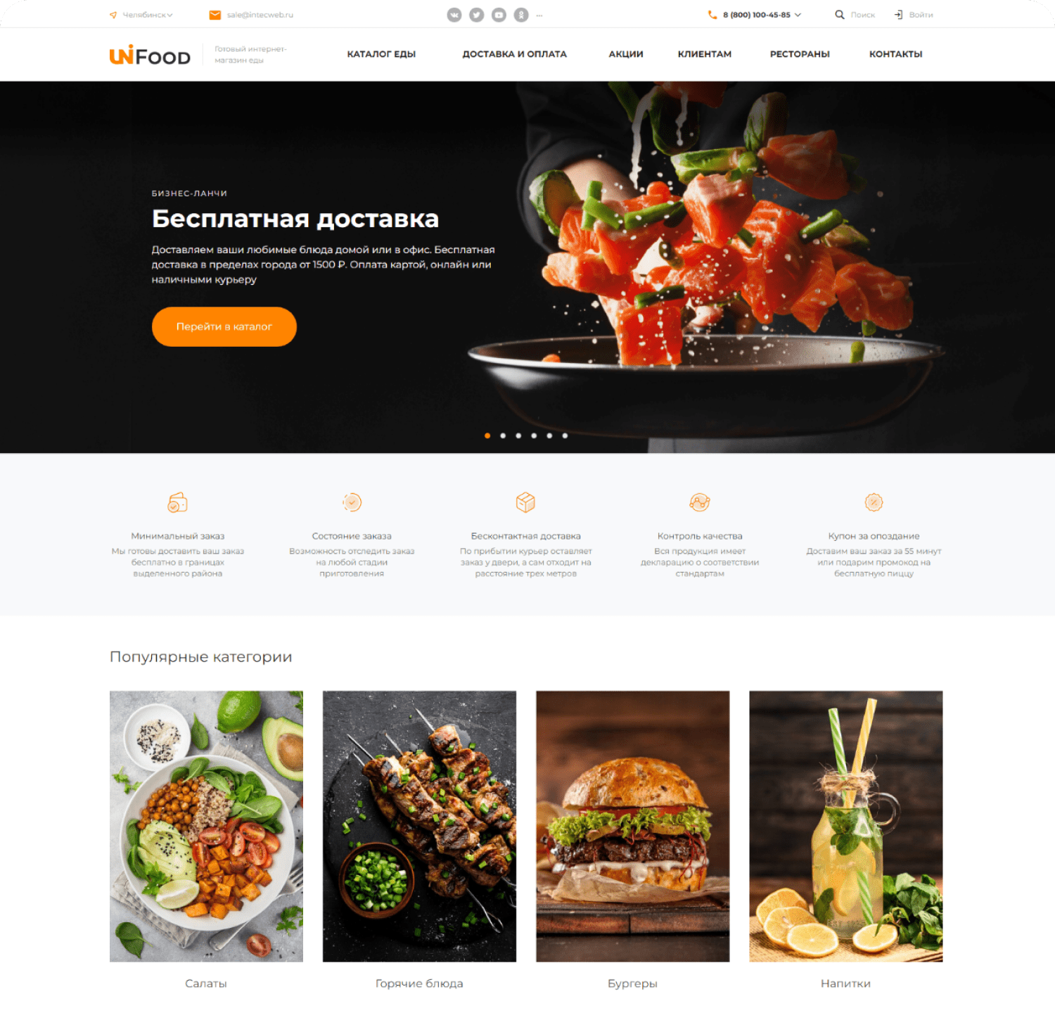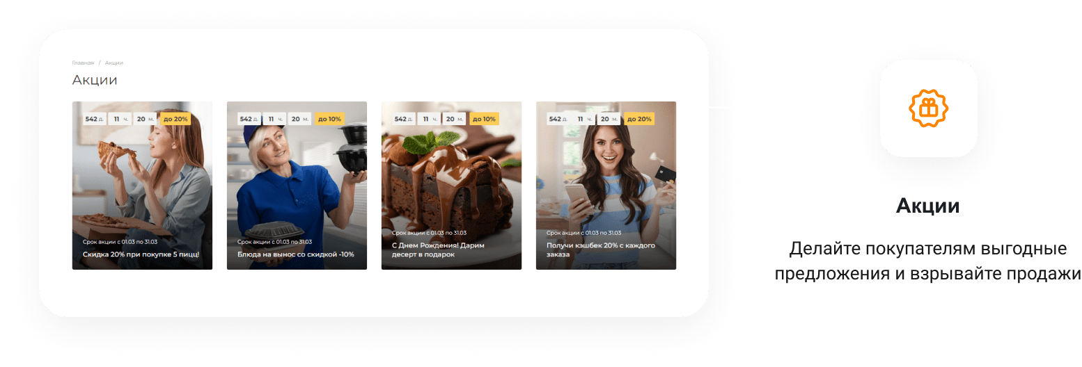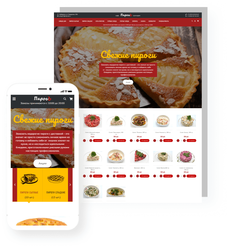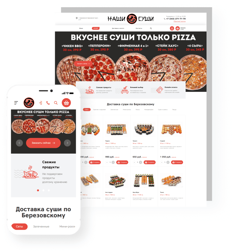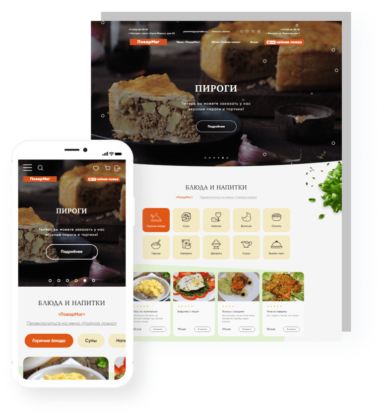 для создания сайта с адаптивным меню, онлайн-заказами и акциямиДоставка еды