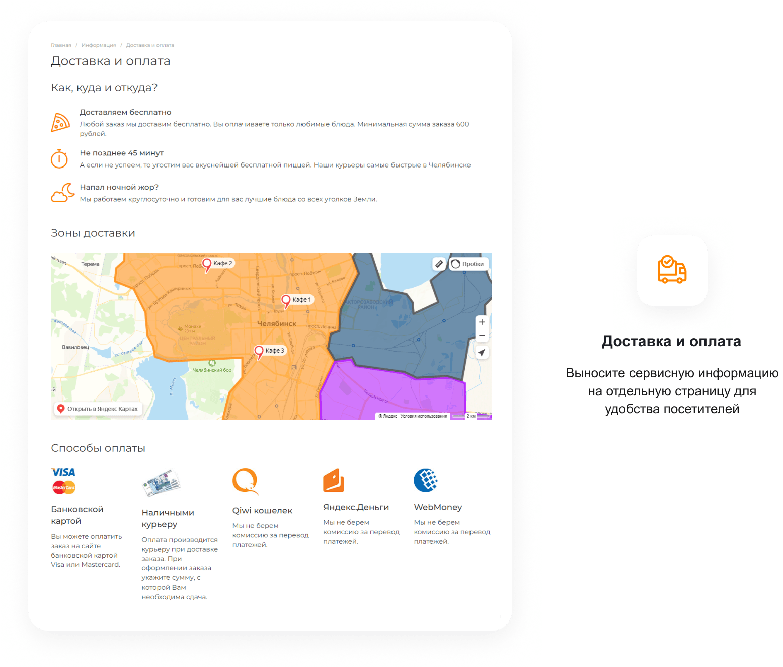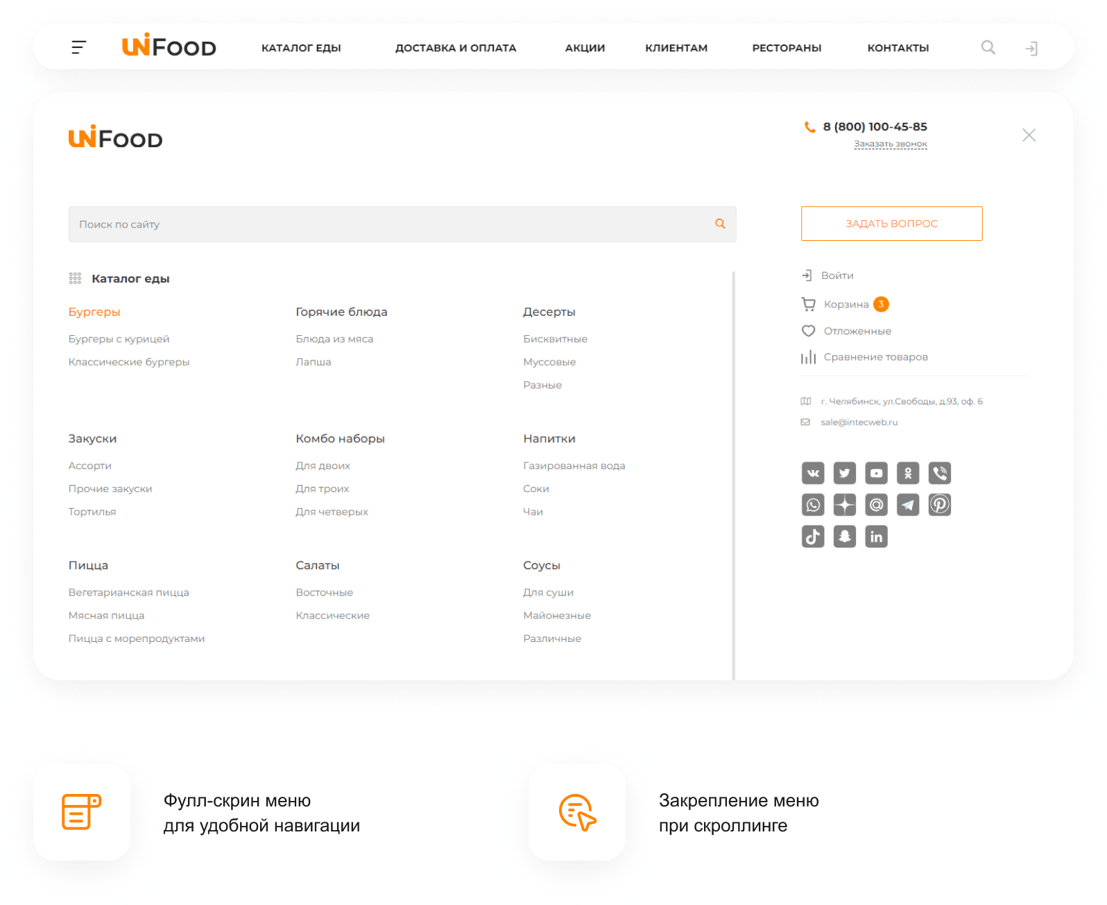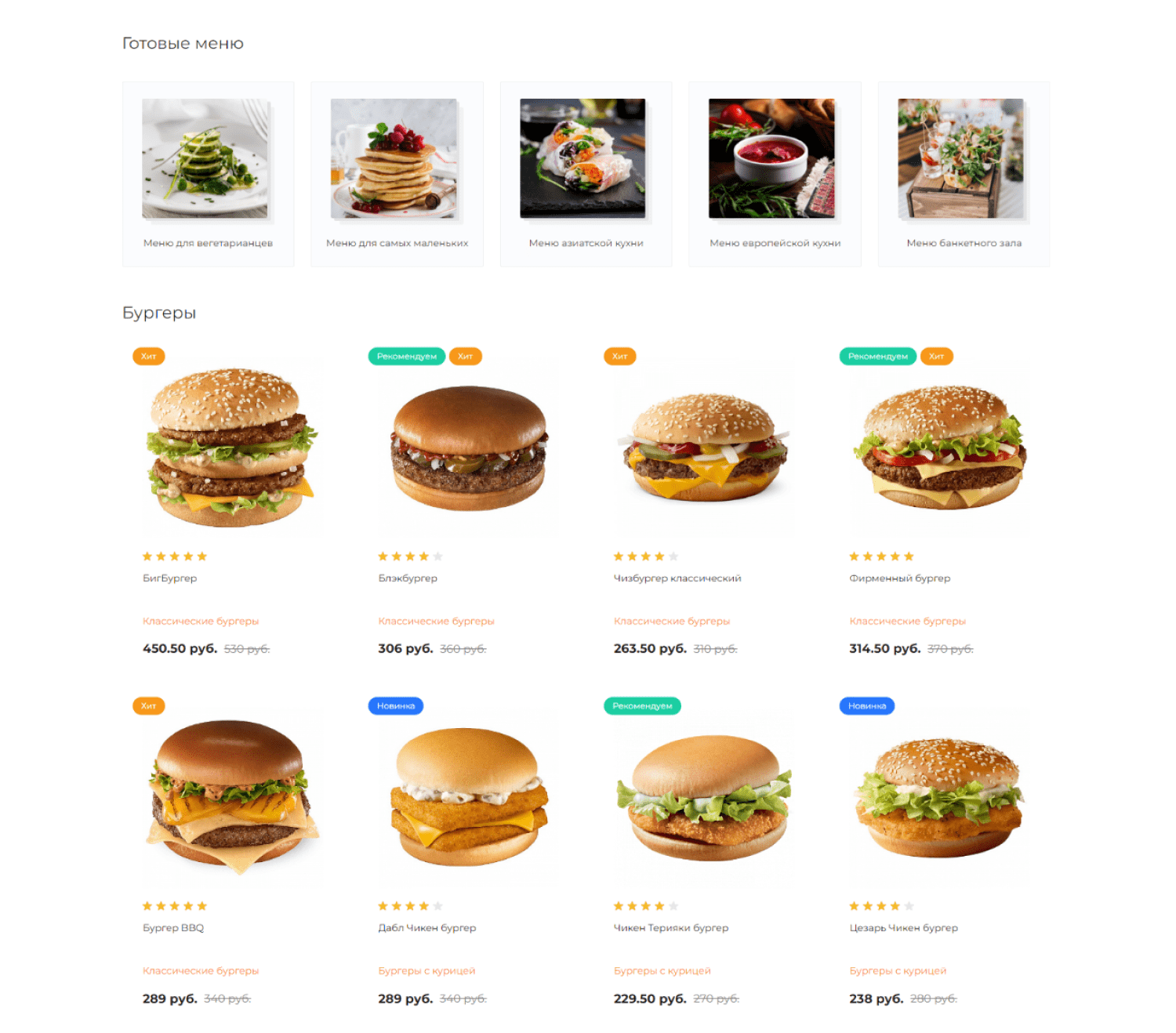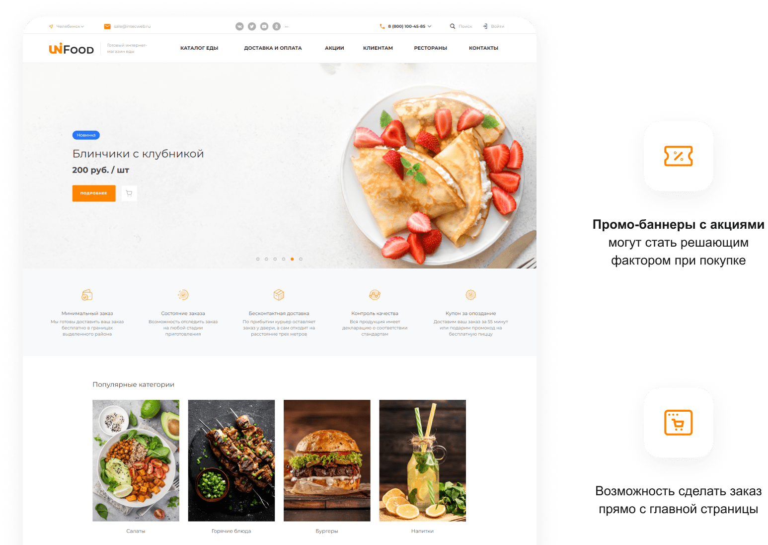 для создания сайта с адаптивным меню, онлайн-заказами и акциямиДоставка еды